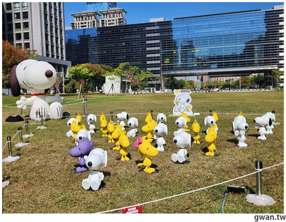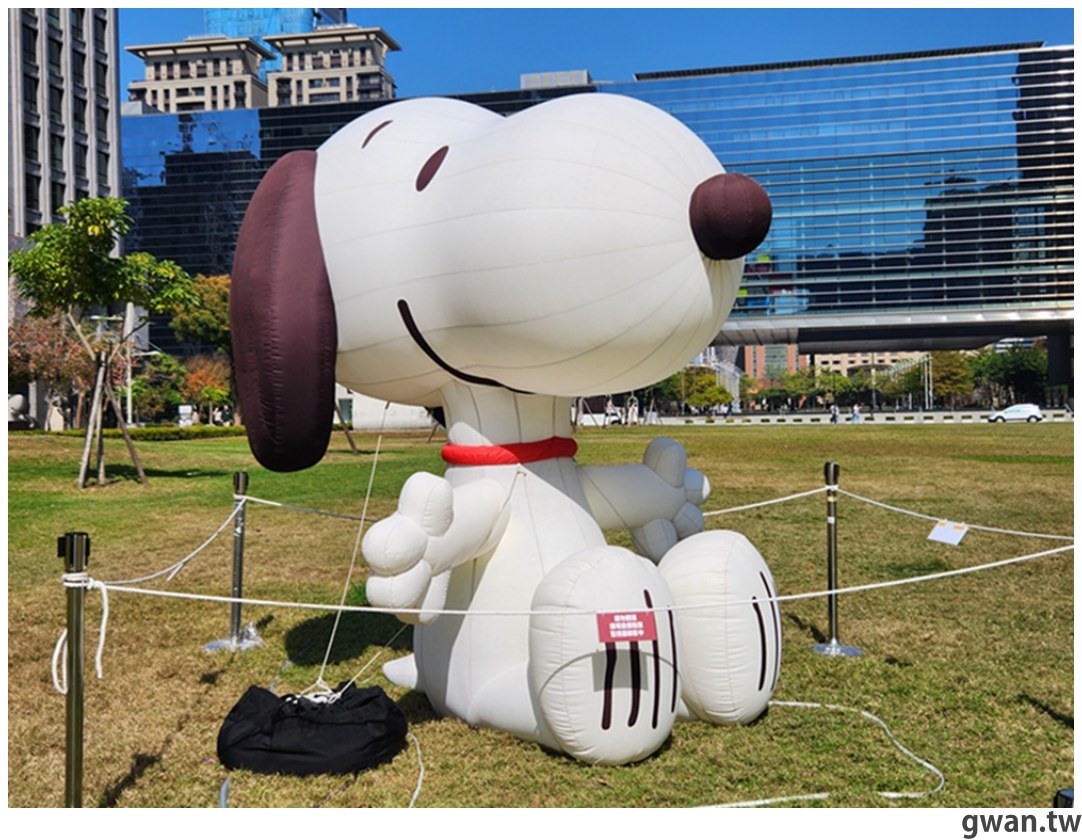 走進市政公園,第一眼就會被3公尺高的史努比與歐拉夫氣偶給吸引