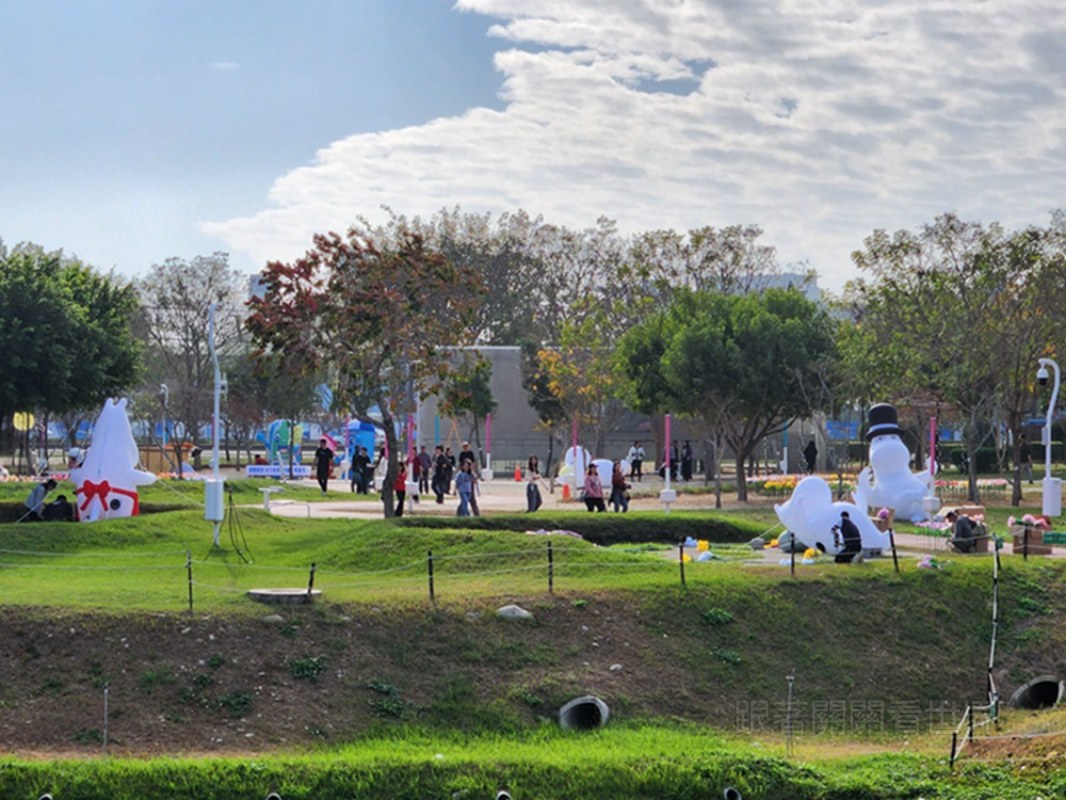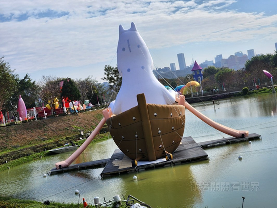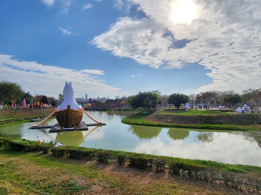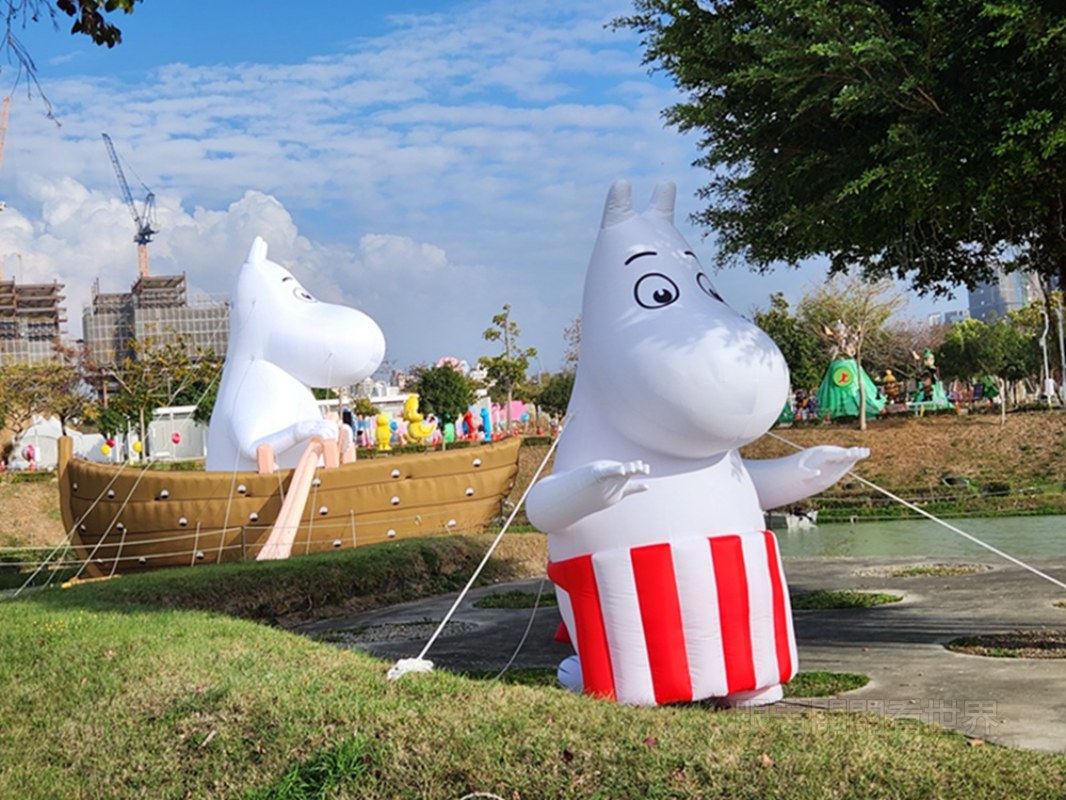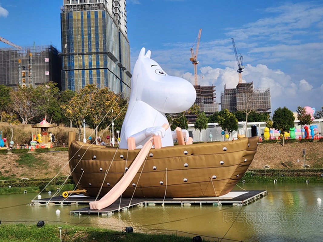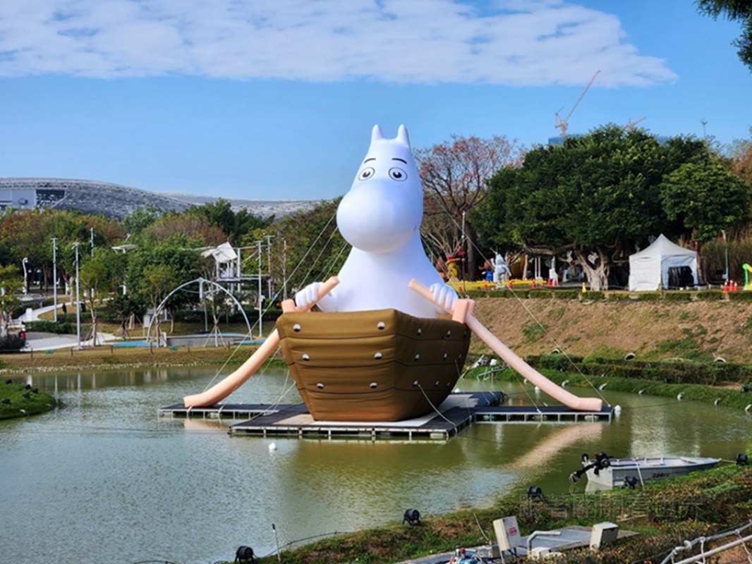 景觀湖上景色更是精采,遠遠就能看到巨大姆明悠哉地划船,白白胖胖的身影配上藍天綠水,每個角度都超好拍