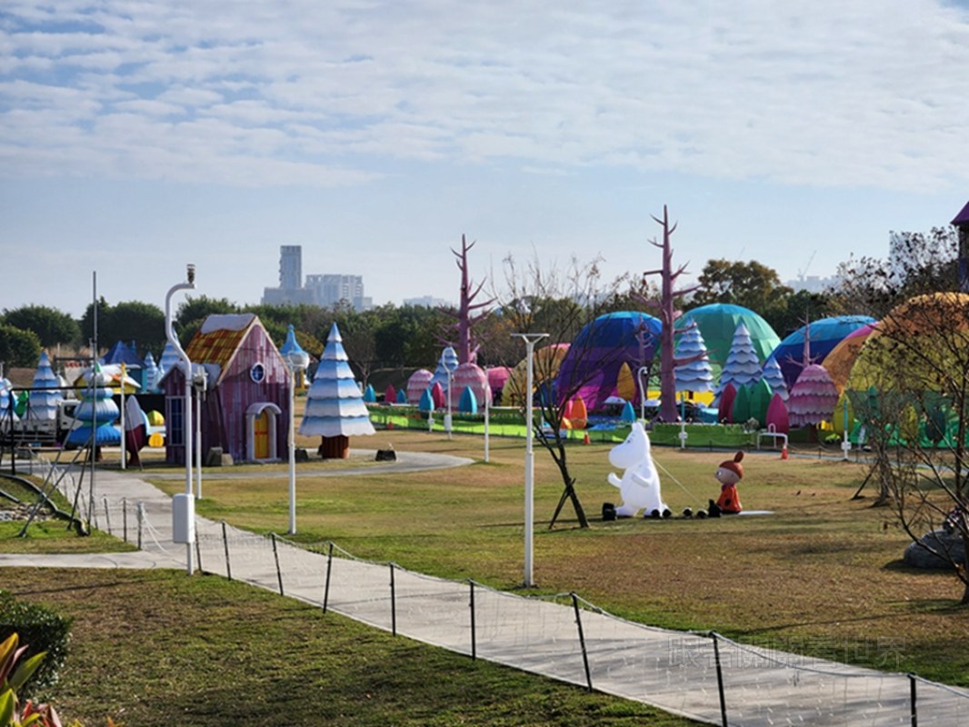 除了姆明與小美,還有許多充滿異國感的樹木與房子,讓人非常期待正式點燈後的樣子