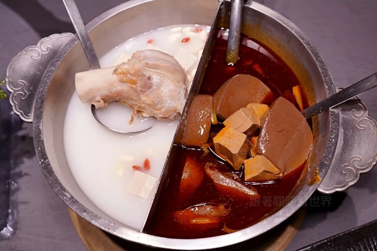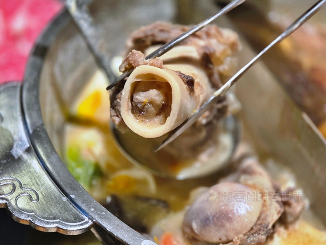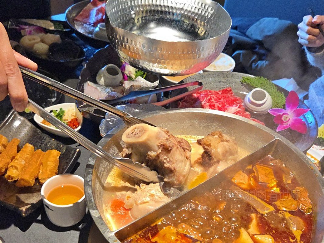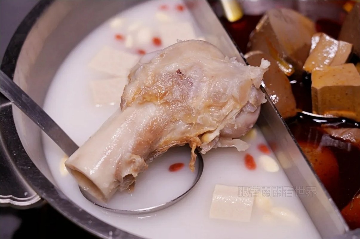 岩漿火鍋的鍋底續加超特別,不只常見的鴨血、嫩豆腐和凍豆腐能無限吃到爽,就連整支大骨都隨你加!