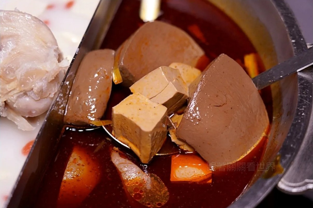 鍋底原本就放了不少鴨血和嫩豆腐,尤其鴨血切得又大又厚,口感超級滑嫩爆汁,完全不輸鴨血專賣店,重點是還能無限續加,吃起來真的超過癮