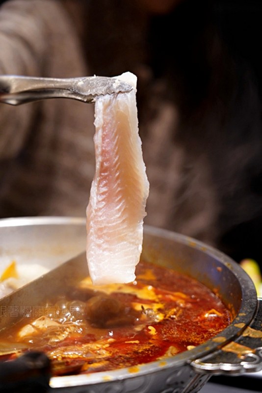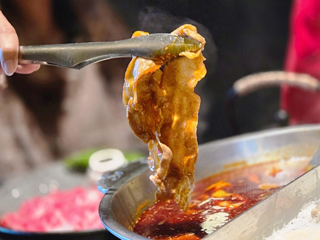 經過高粱酒炙燒的肉片吃起來不僅軟嫩,還帶有一股迷人的油脂焦香,丟進重口味的麻辣湯裡煮過口感更升級