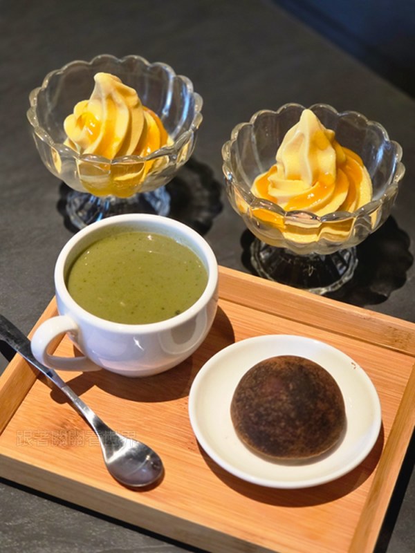 餐後招待的甜點有冰淇淋或是客家擂茶佐麻糬二選一。我們這次吃到香甜不膩的芒果冰淇淋,孩子們搶著吃,個人喜歡客家擂茶配麻糬,Q彈的黑糖麻糬包著有顆粒感的花生內餡,配上一口熱熱的擂茶,真的非常享受