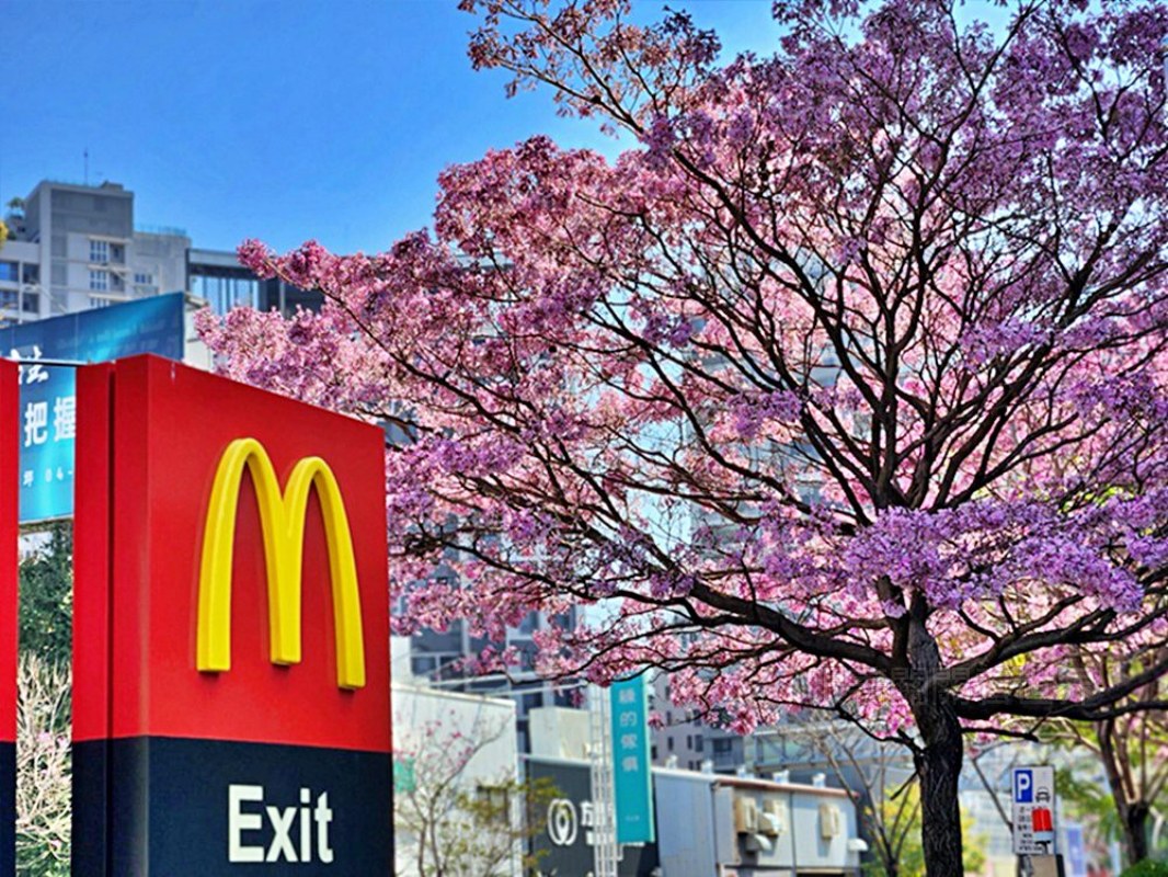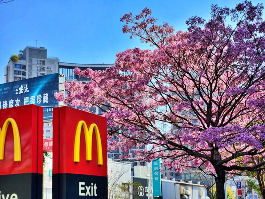 傳說中的台中最美麥當勞!怎麼只有2棵風鈴木?拍照角度喬好久XD