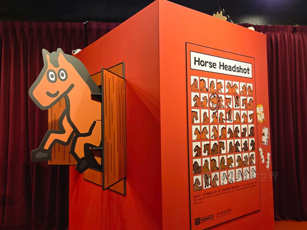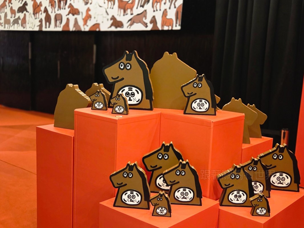整個展區最吸睛的就是矗立在中央、高達2.8公尺的巨型小虎馬!小虎馬不只體型高挑,表情更是呆萌有戲,整個畫面童趣又討喜