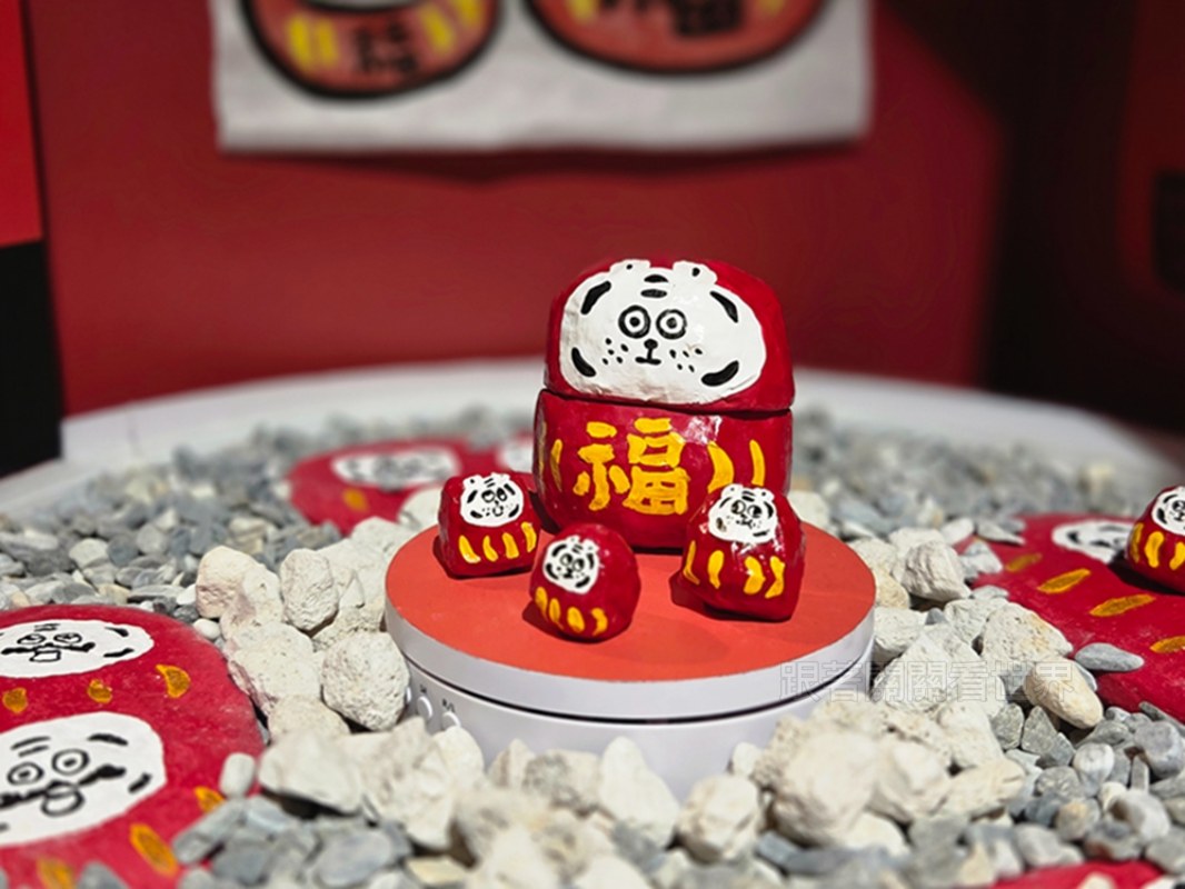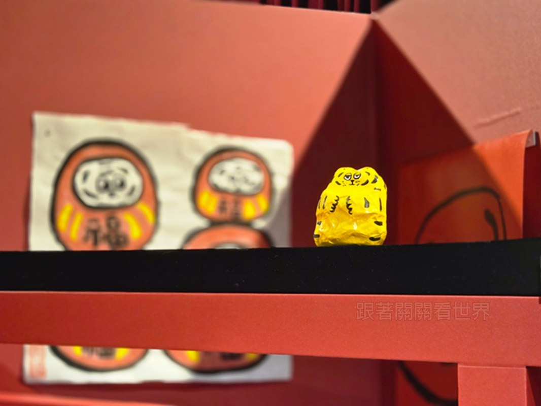 將日式鳥居的祈願意象,搭配達摩不倒翁精神,期許在馬年能有不倒翁般的毅力,穩穩完成心願