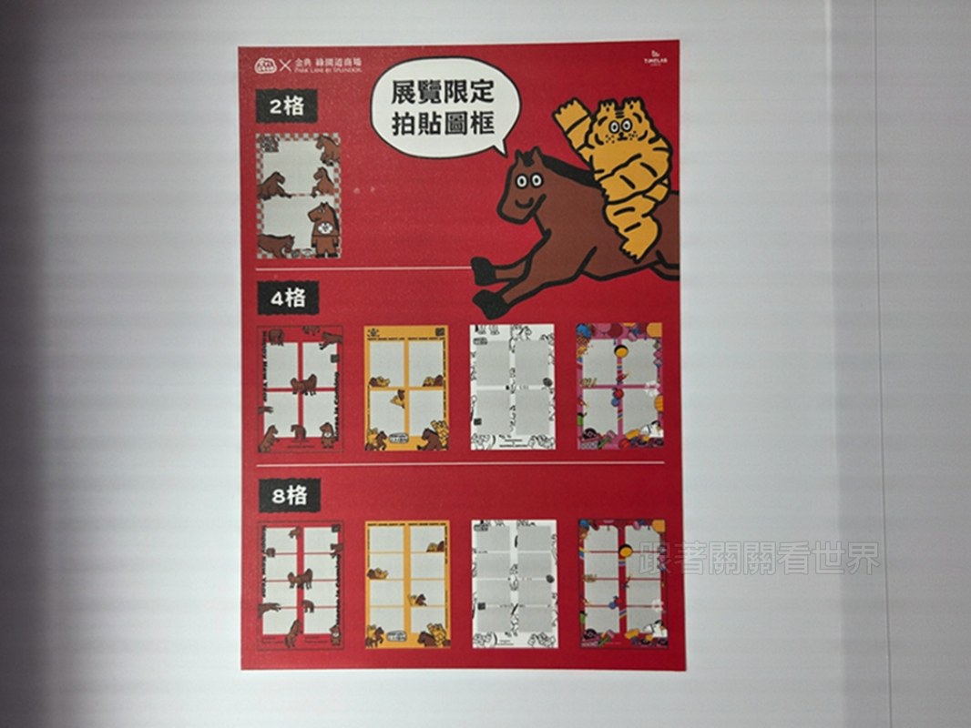 除了拍照打卡,現場也和 TIMELAB 拍貼機合作,融入了「小虎day」的可愛角色與馬年元素,推出 5款專為特展設計的主題拍貼框
