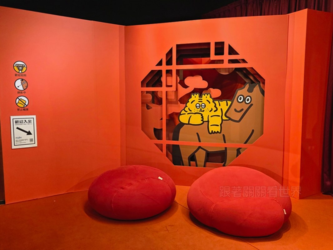 這次還特別與知名品牌Yogibo懶骨頭合作,在展區尾端設置了100公分的超大懶骨頭。搭配背景精緻的中式窗花與復古氛圍場景,讓你逛累了就直接坐下來,整個人陷進去,用最舒服的姿勢慢慢欣賞這場充滿新年氣息的可愛展覽