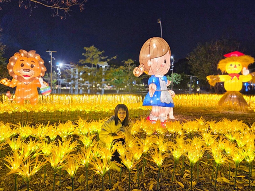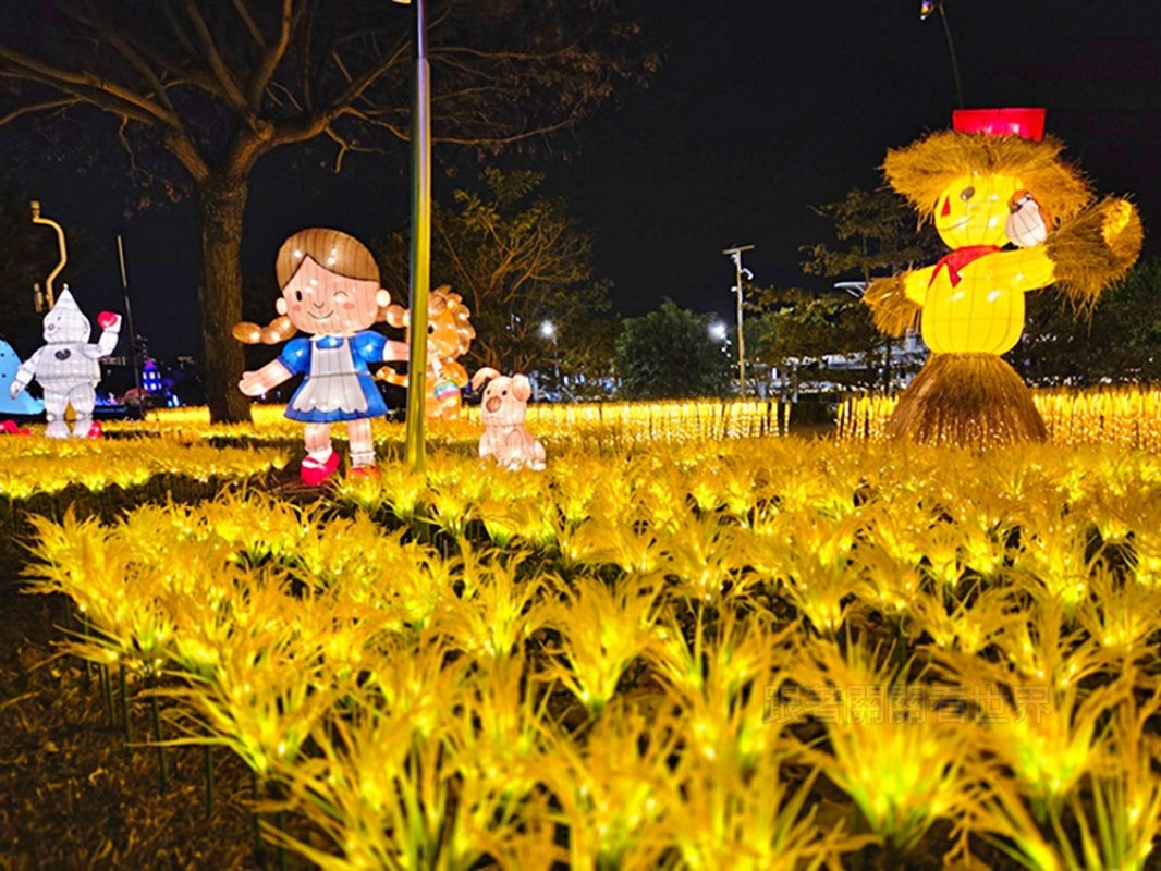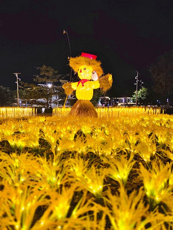 走進田野奇跡,眼前是一片閃著金色光芒的稻田燈海,看著綠野仙蹤的主角們在稻浪中閃閃發光,就像在慶祝那份最純粹的友誼與團結