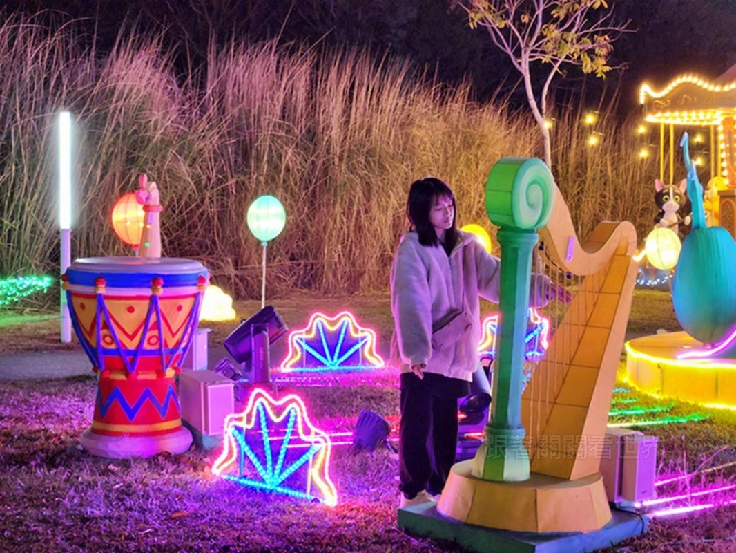 你可以拍打鼓面、按壓薩克斯風、彈奏豎琴,像是用智慧與勇氣的能量灌溉這根七彩巨藤,隨著敲擊的音樂聲,整棵逐夢之樹會開始閃耀綻放,有種親手點亮童話的成就感!