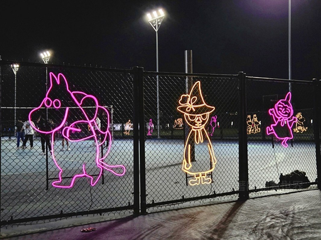 一整排角色燈飾形成可愛的光牆,讓原本專業的運動空間多了一份童趣