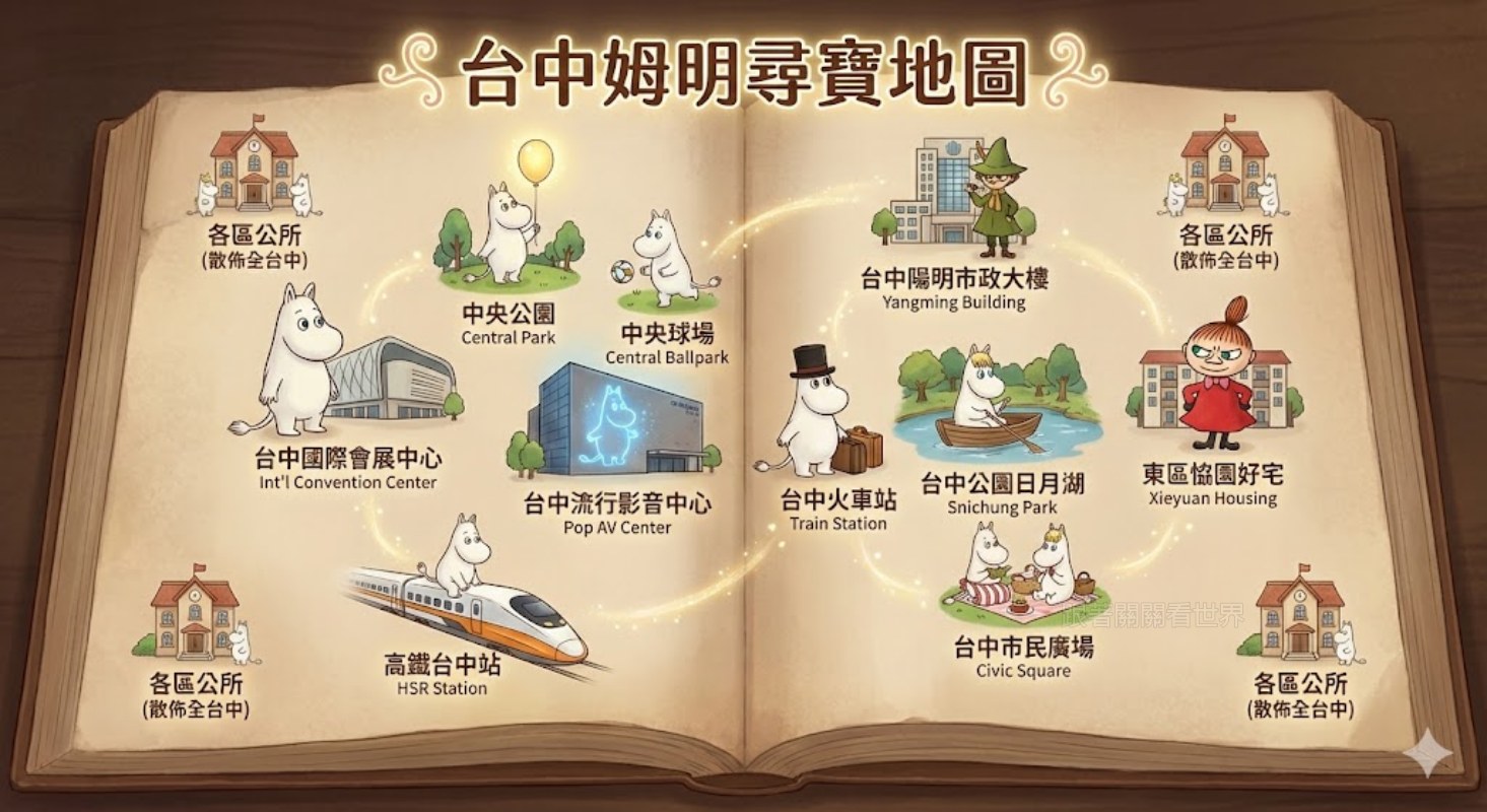 為了迎接 2026 中台灣燈會,台中各地默默被「姆明一族」佔領了!這些可愛裝置陸續出現在不同角落,每發現一個新的姆明,就會開始期待下一個在哪裡?不知不覺,自己也收集不少可愛的姆明身影,無論你是想朝聖台中燈會、親子出遊,還是單純被姆明圈粉,都可以照著台中姆明尋寶地圖慢慢拍、慢慢收集,看看你還漏掉哪一個?