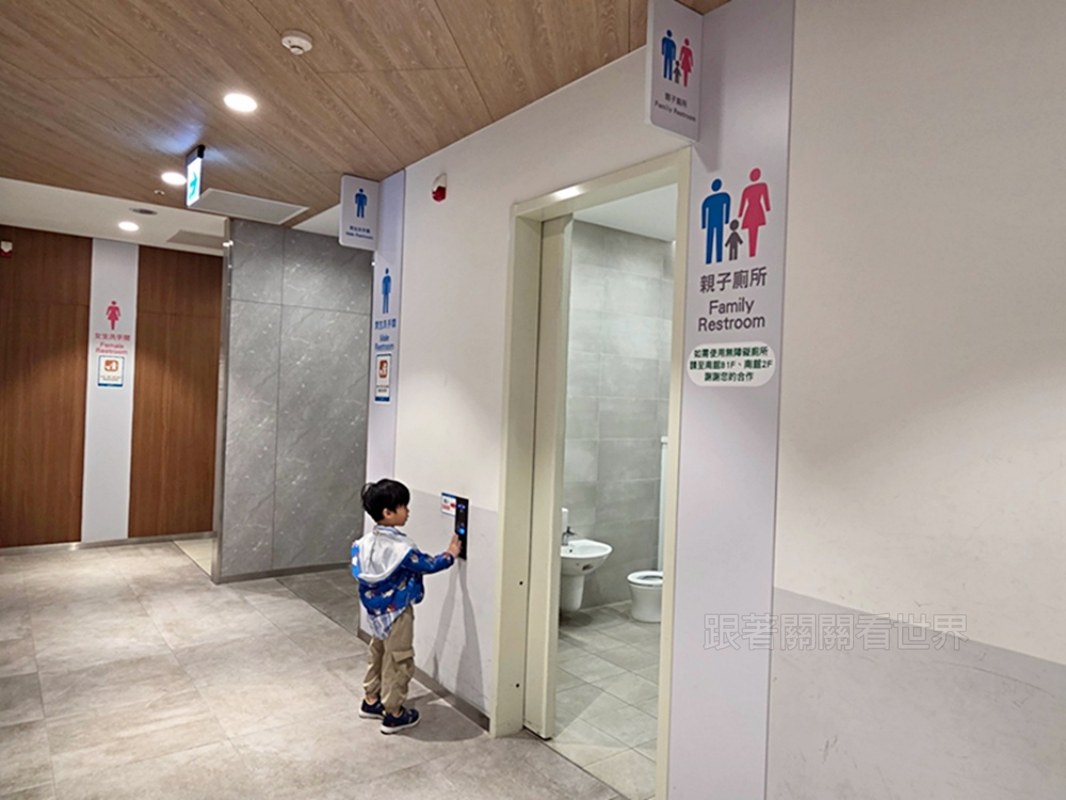 • 專屬兒童設備: 裡面配置了小朋友專用的小馬桶、小小便斗,甚至還有高度剛好的小洗手台,讓孩子可以自己如廁跟洗手