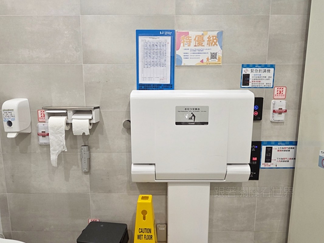 除了高科技門鎖,LaLaport 親子廁所裡的設備也非常貼心,幾乎把家長會遇到的需求都想到了