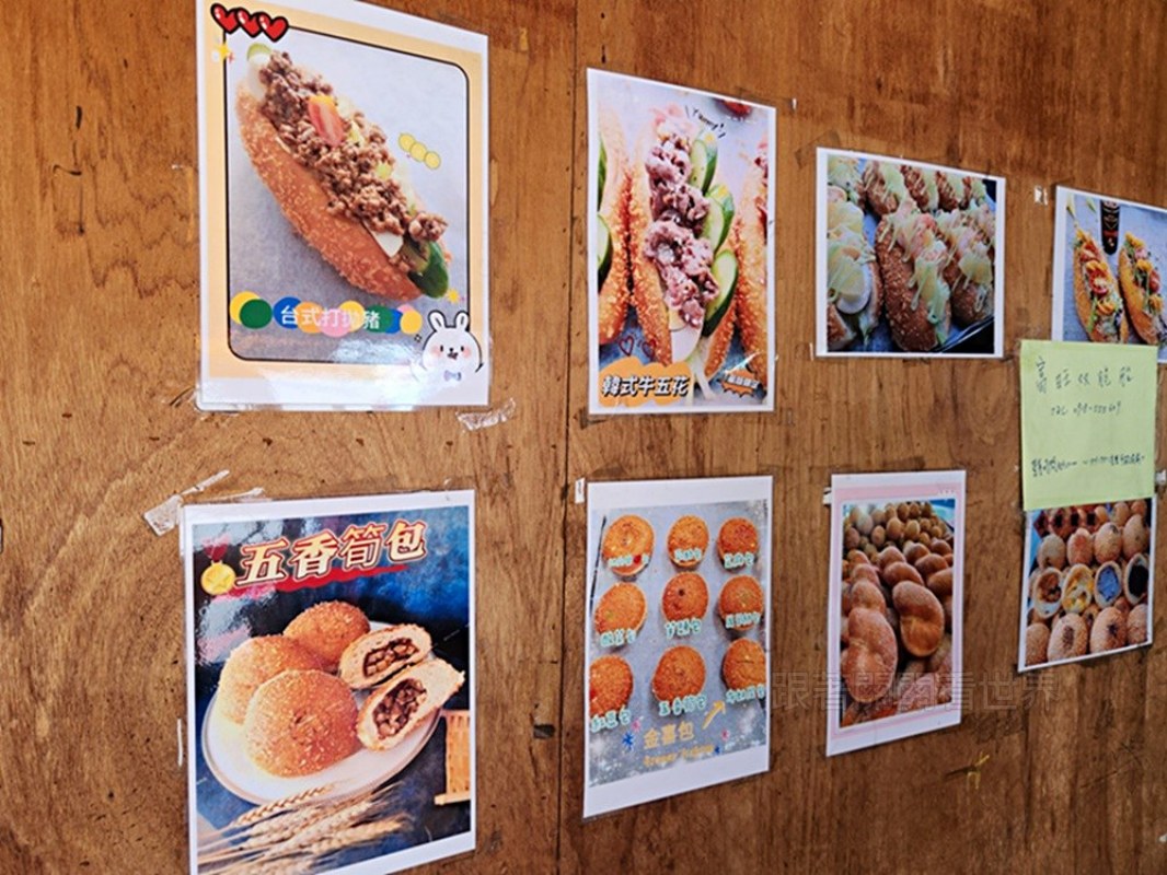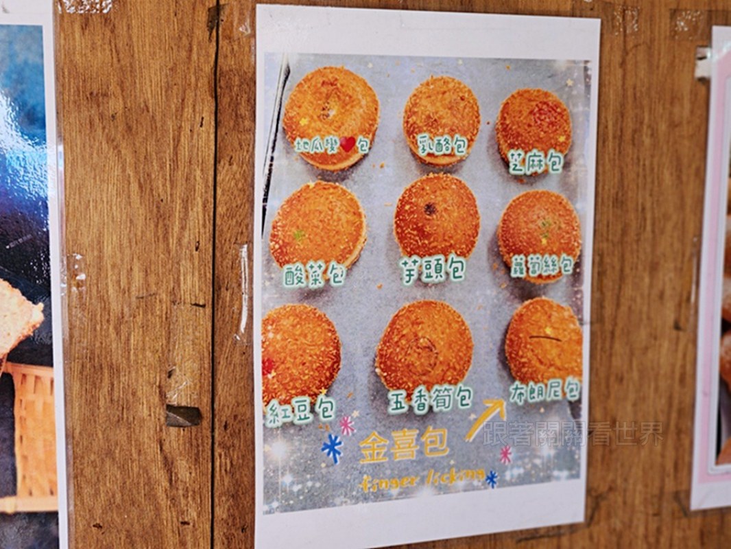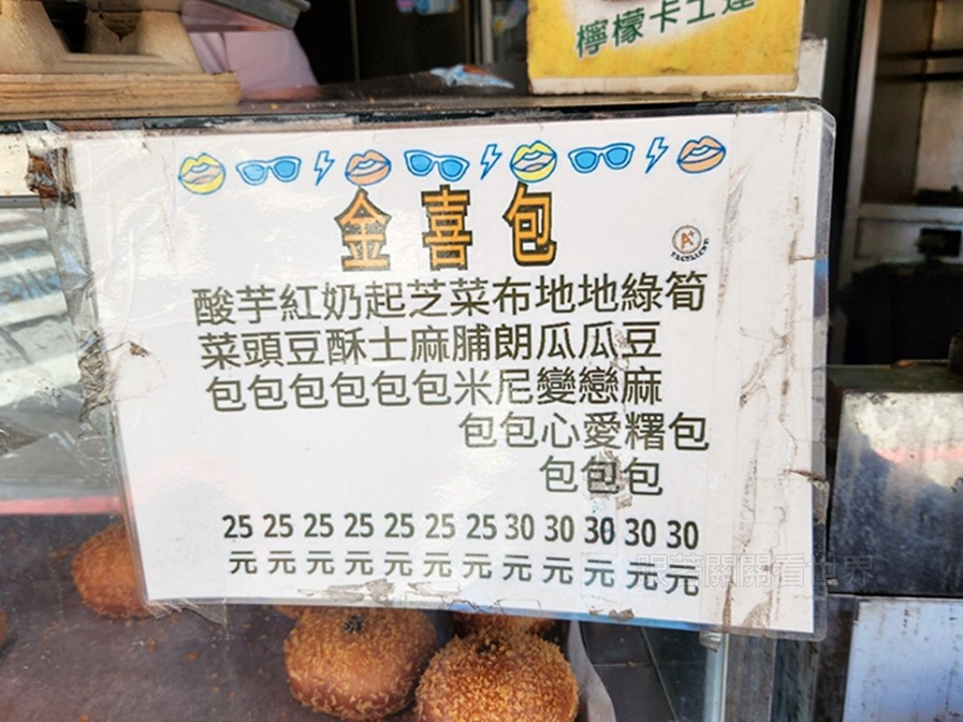 看著布條上的餐點清單,從經典的甜甜圈、雙胞胎、芝麻球,到口味豐富的營養三明治、金喜包,每一樣看起來都好欠吃