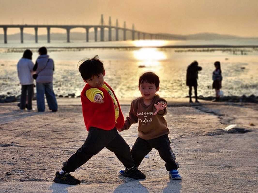 也可以走到哨站外的海堤,以大橋為背景,捕捉最自然的生活瞬間