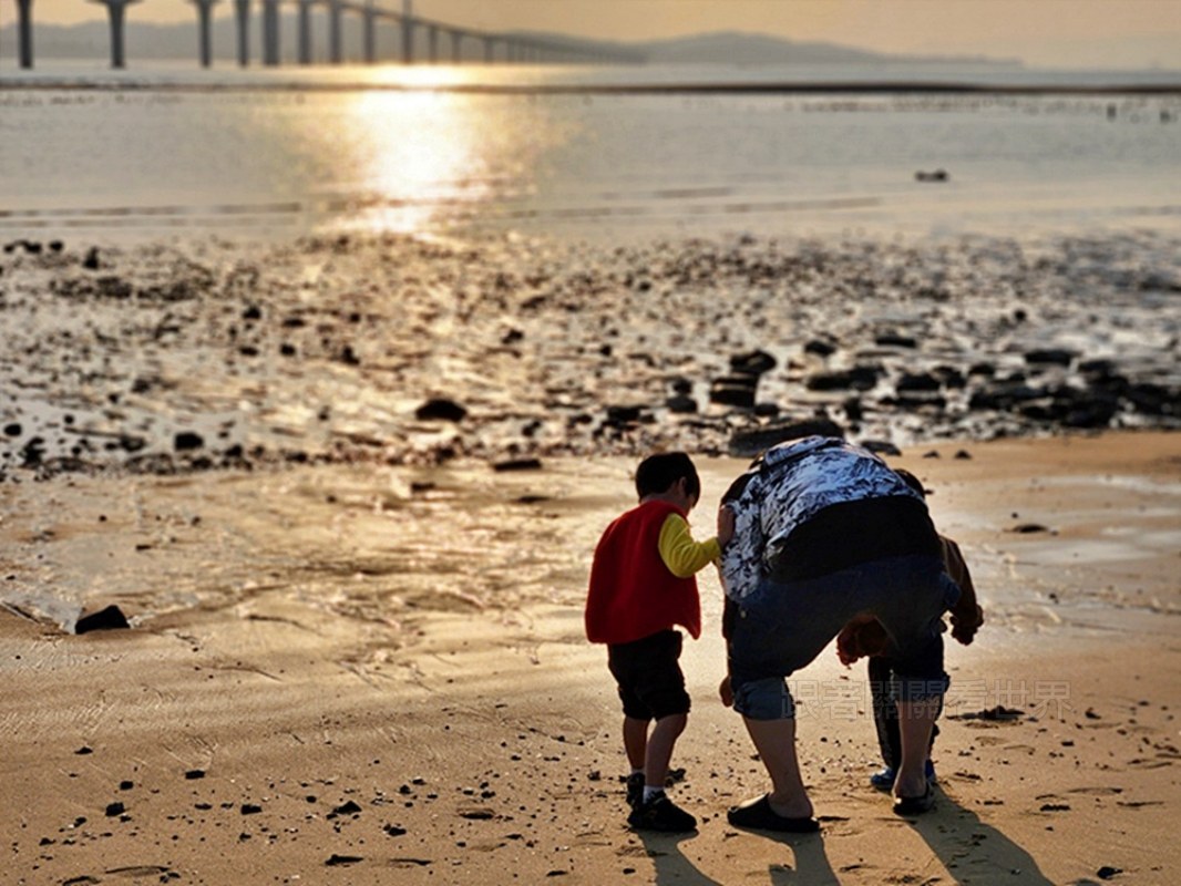 親子漫步:撿貝殼、吹海風的愜意時光