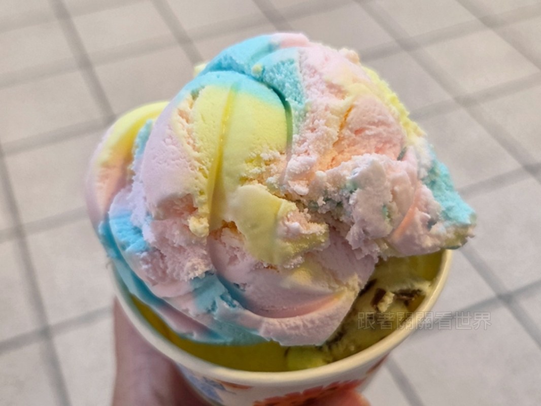 這次選了顏色超繽紛的彩虹焦糖和香蕉巧克力,拿在手上拍照很加分!記得以前還可以選甜筒,現在統一改成紙杯裝,但份量沒有縮水!大家買完都會坐在對面慢慢吃,看著人來人往,也是種愜意的台北日常~
