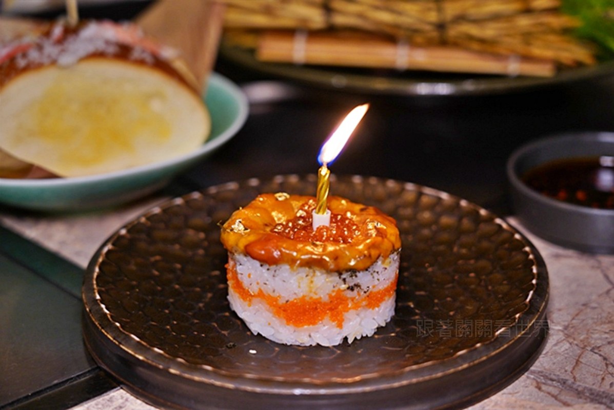 很多人是為了慶生而來,因為精誠壹山的壽星優惠真的誠意滿滿!當日壽星招待北海道海膽蛋糕(也可以更換成干貝),當月壽星則招待日本生干貝甜蝦漢堡