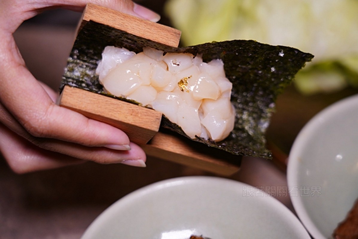 干貝滿載更是將生食干貝鋪好鋪滿,甚至還有金箔點綴,一口咬下滿滿鮮甜真的超滿足