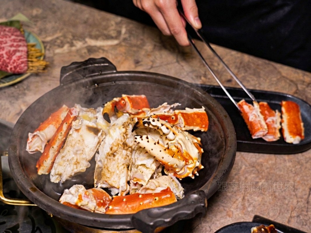 帝王蟹腳一蟹兩吃:石燒酒香與專人火烤