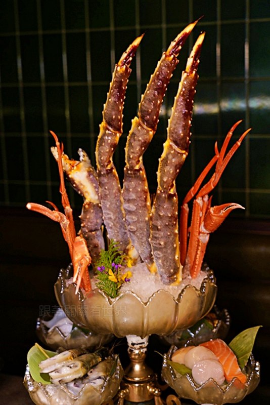 原本套餐搭配的是活體波士頓龍蝦,但我更推薦升級帝王蟹腳!視覺衝擊的海鮮塔,不只是浮誇,還讓你吃到滿滿高級海鮮,超巨的帝王蟹腳霸氣直立,加上旁邊的松葉蟹腳,看起來超有氣勢,最棒的是幫你做成蟹肉三吃,用不同方式品嚐新鮮海味
