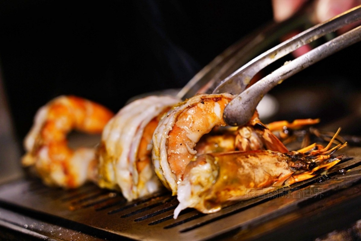 還有厚實軟Q的野生砲管大軟絲、烤過後帶著迷人香氣的野生大花蝦,以及油脂豐富的挪威鮭魚,一整套吃下來都是高級海鮮,陣容真的很豪華