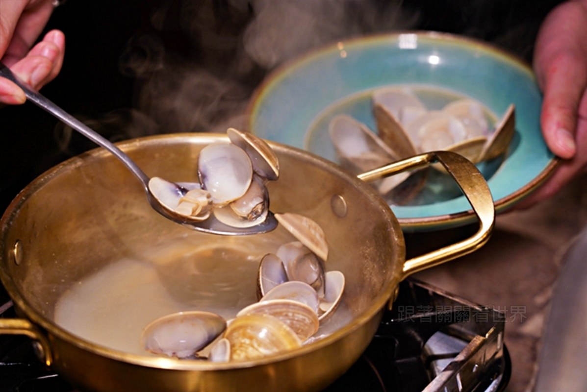 蛤蠣則會加入高湯燉煮,煮好後裝起來就是滿滿一盤