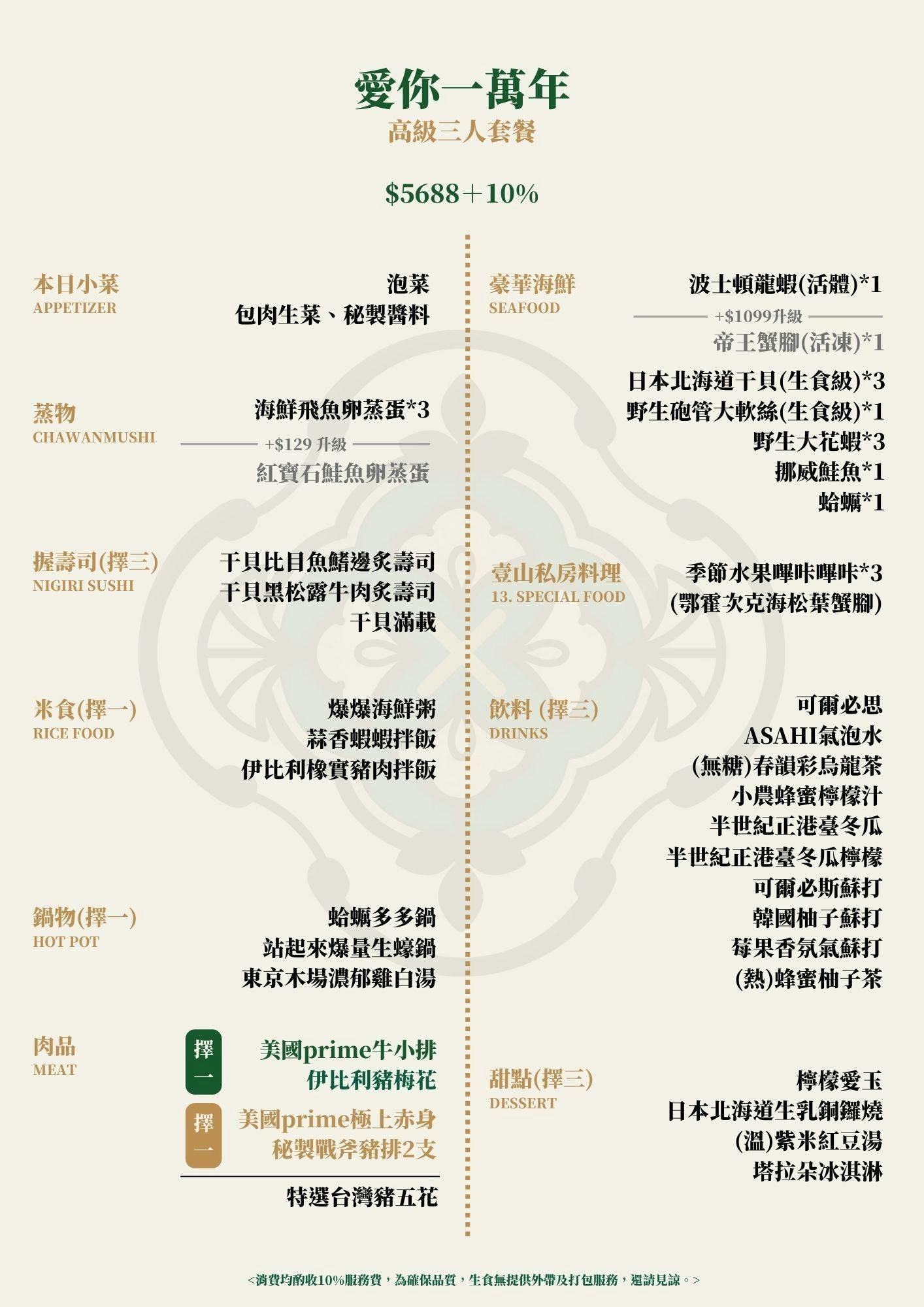精誠壹山套餐推薦|愛你一萬年高級三人套餐