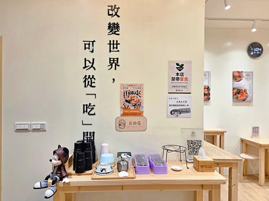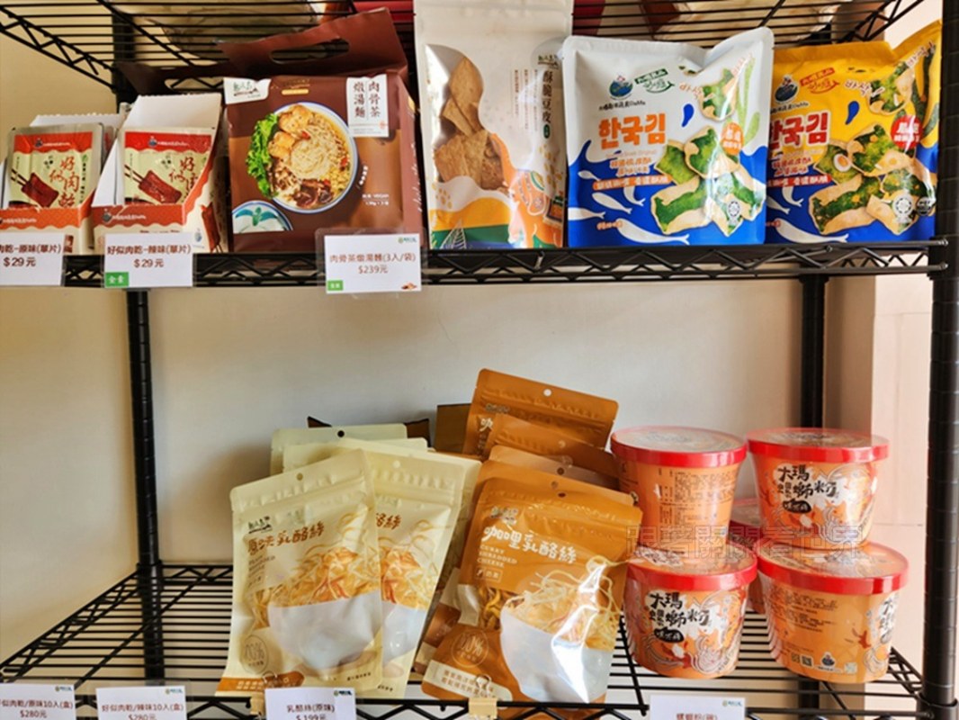 離開前,也別忘了逛逛門口的蔬食商品區,這裡有各式各樣的素食零嘴和商品可以買回家!