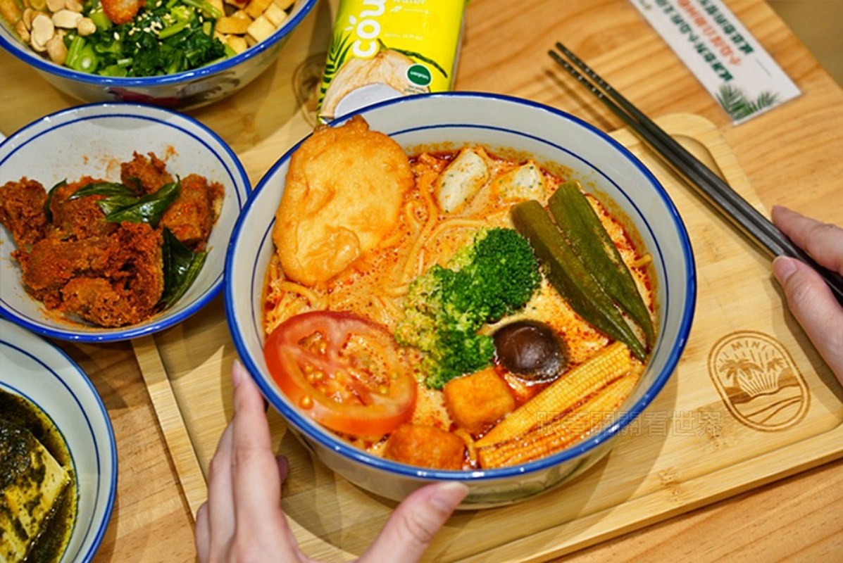 餐點主打南洋風味,從飯類、麵類到炸物、小菜都有,百元初頭就能點一份主餐的親民價格!重點是吃起來不清淡無聊,而是透過香料、椰奶、香茅等元素去堆疊風味層次,就算平常不吃素的人也會覺得很好入口