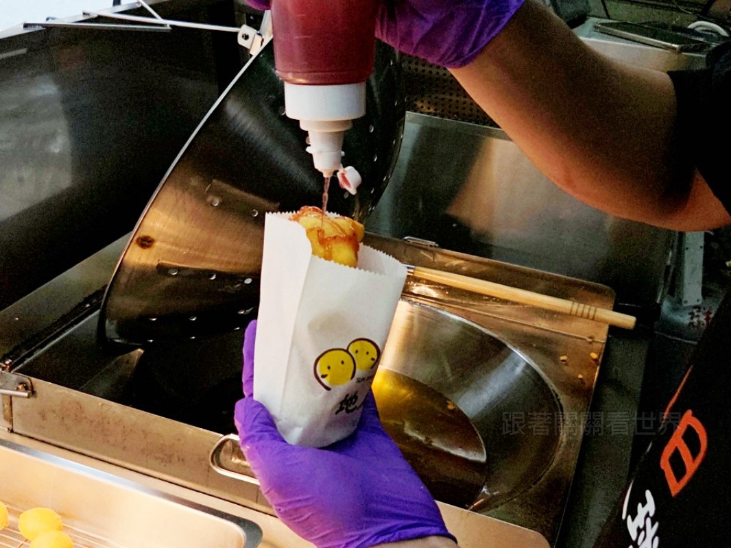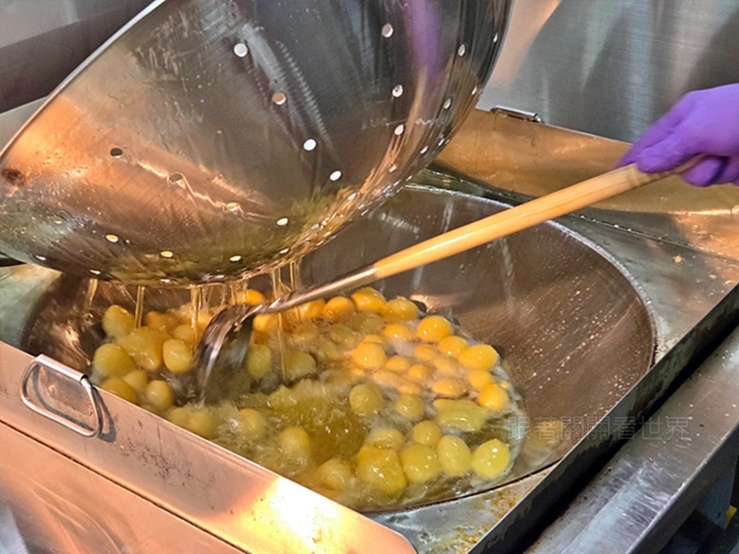 看著老闆熟練地在油鍋前按壓、翻滾著地瓜球覺得好療癒,而且鍋子裡的油是很乾淨那種