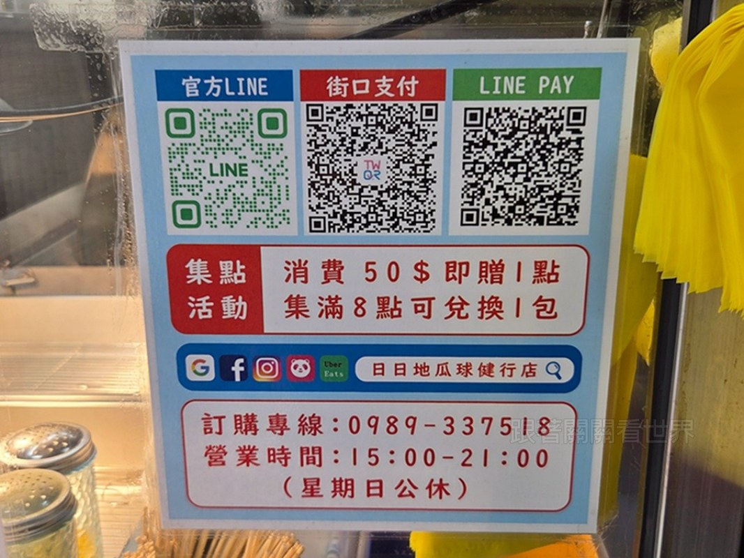 除了買一送一,現場還有集點活動,消費滿50元就能集1點,集滿8點再送一包地瓜球!不過老闆有時候太忙會忘記,可以主動提醒一下,算是額外的小確幸