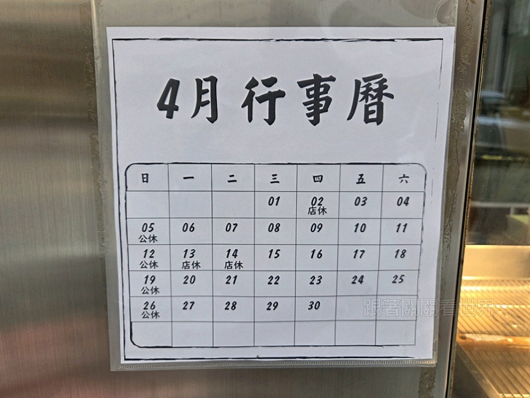 日日地瓜球是週日公休,但週間感覺也會不定時休息,順便拍了4月行事曆給你們參考