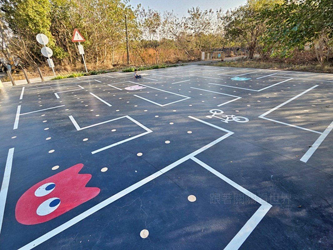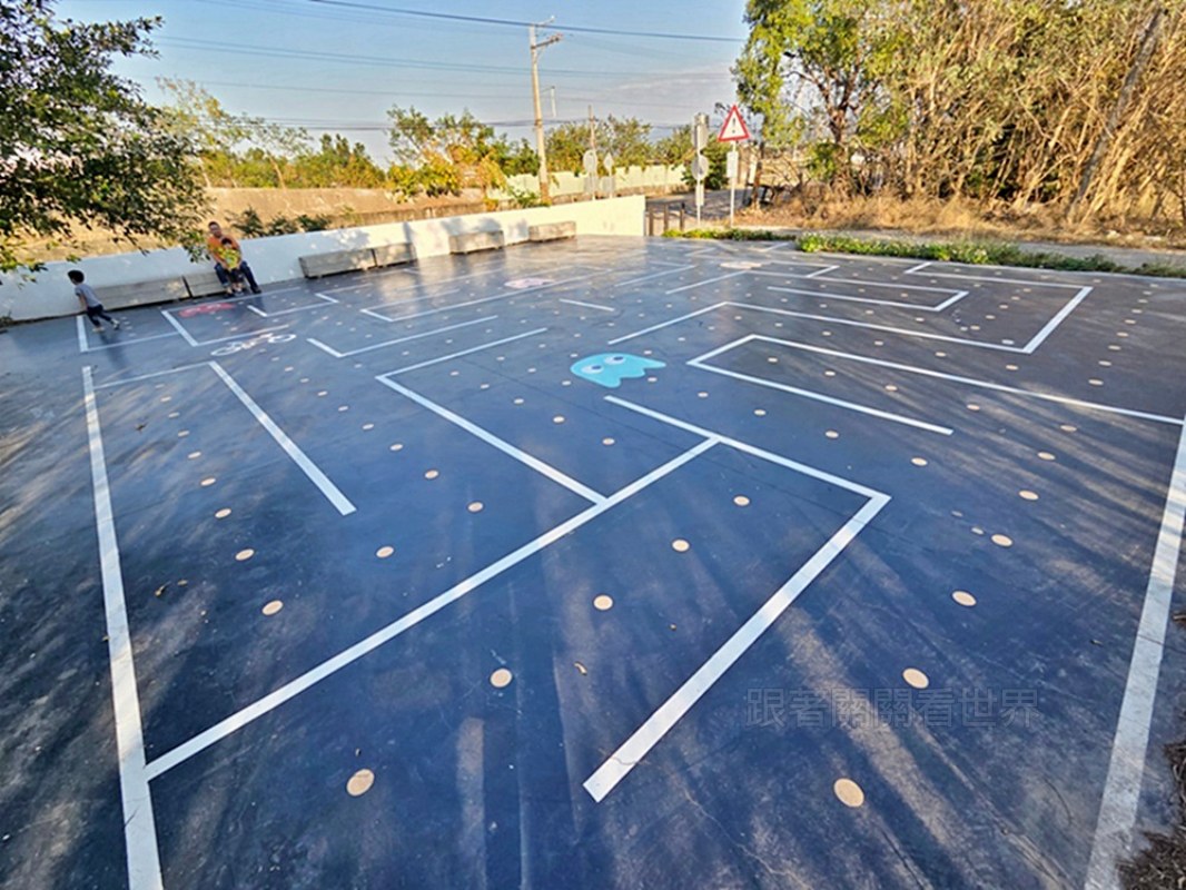 台中大甲的小精靈迷宮,也就是貪食芋田廣場,是自行車道上的隱藏版打卡點,若是騎腳踏車前來,可以沿著北堤東路騎,沿途都是開闊的田園風景,騎到終點就是迷宮地景