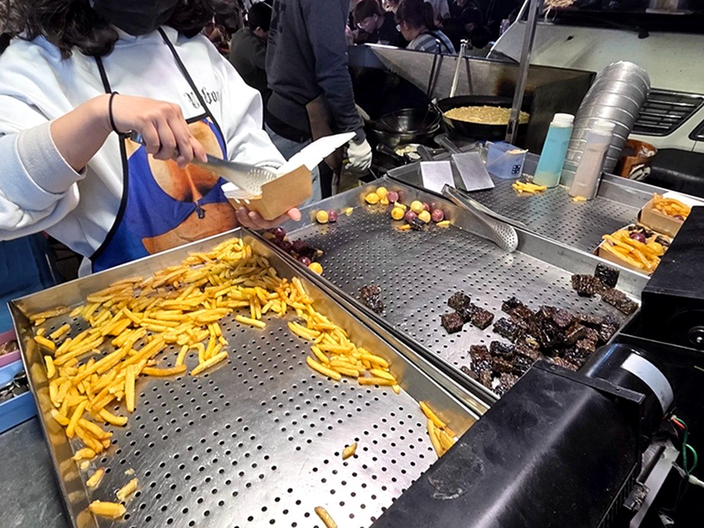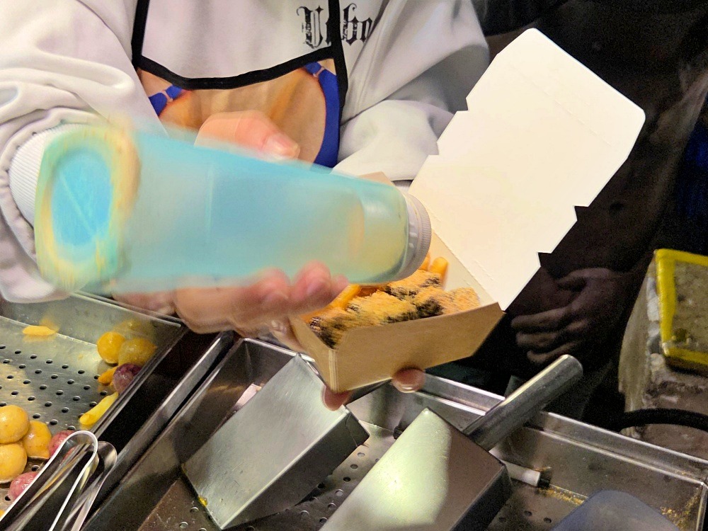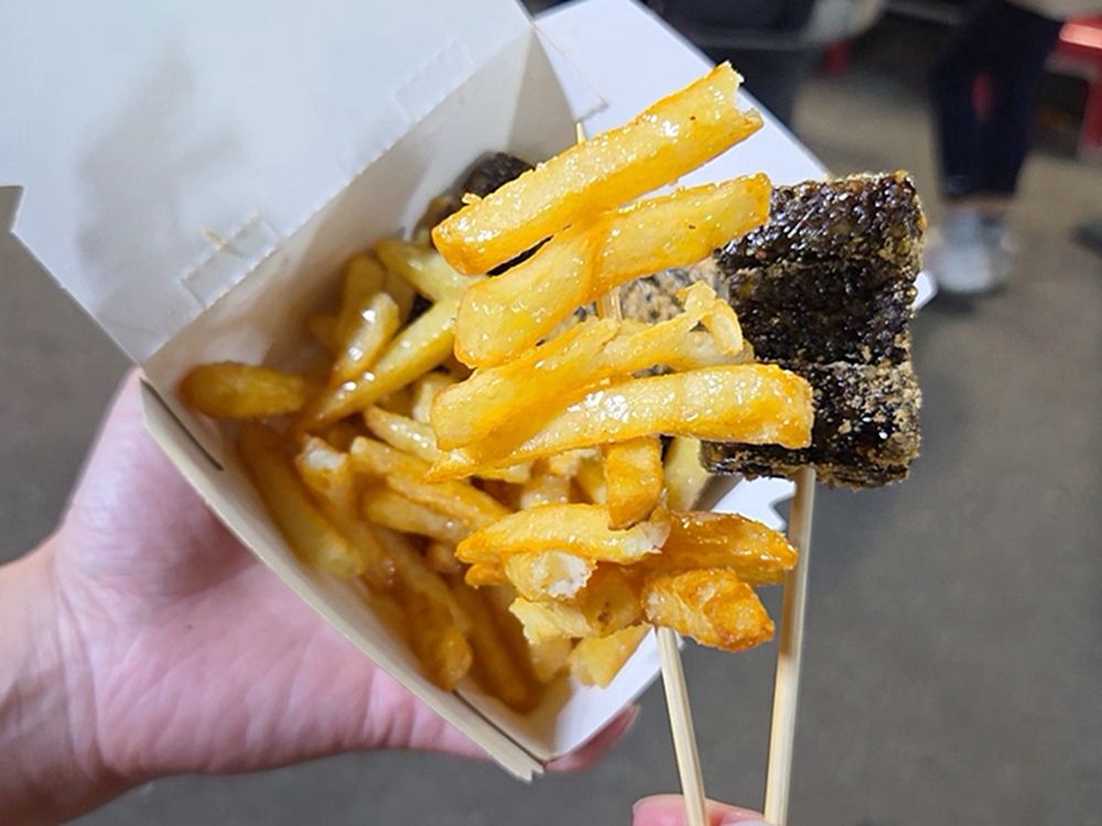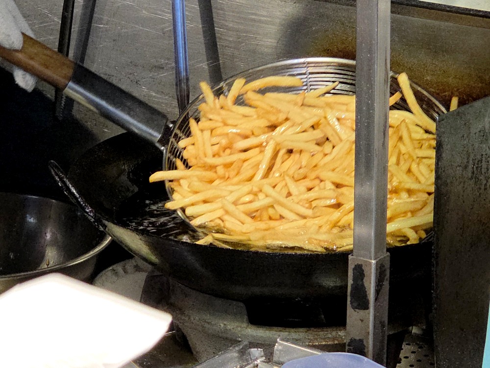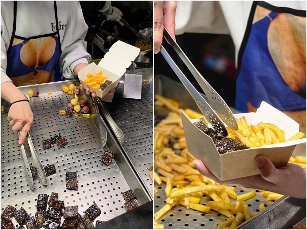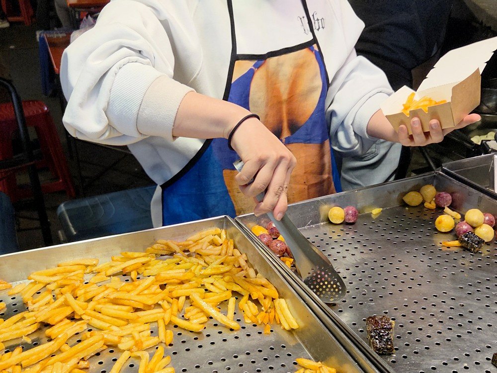 主打特色就是「現炸+拔絲」,整鍋油不斷在炸,旁邊還有剛起鍋的薯條,製作過程很療癒,讓人不自覺排進隊伍
