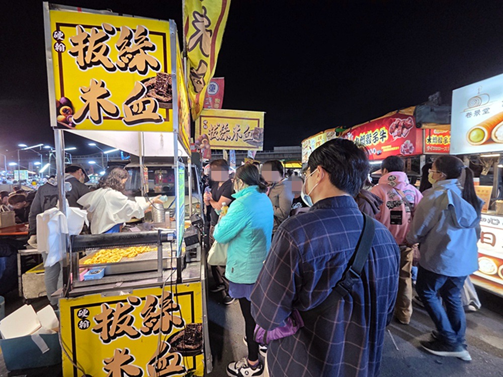 如果你想找硬翰拔絲米血,可以鎖定靠近汽車停車場那一側,經過這攤常常有人在排隊