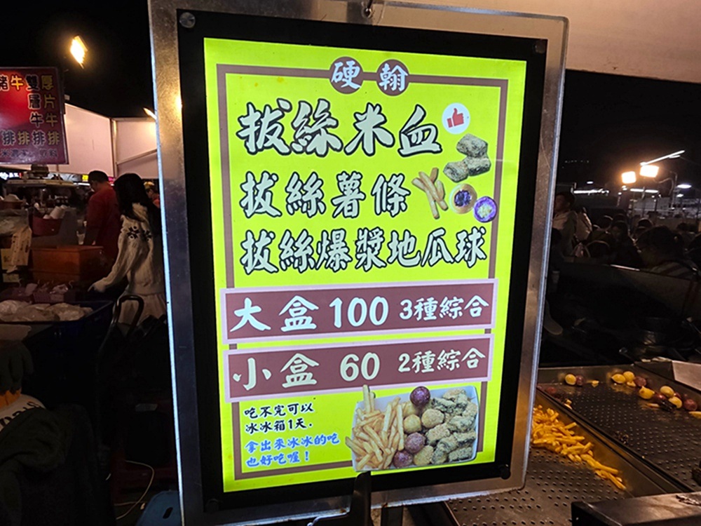 說到台中大慶夜市,很多人會先衝排隊名店,但其實在夜市裡藏著一攤很有特色的硬翰拔絲米血!雖然不是什麼新面孔,但一般夜市頂多就是拔絲地瓜、芋頭或地瓜球,賣拔絲米血反而很有記憶點