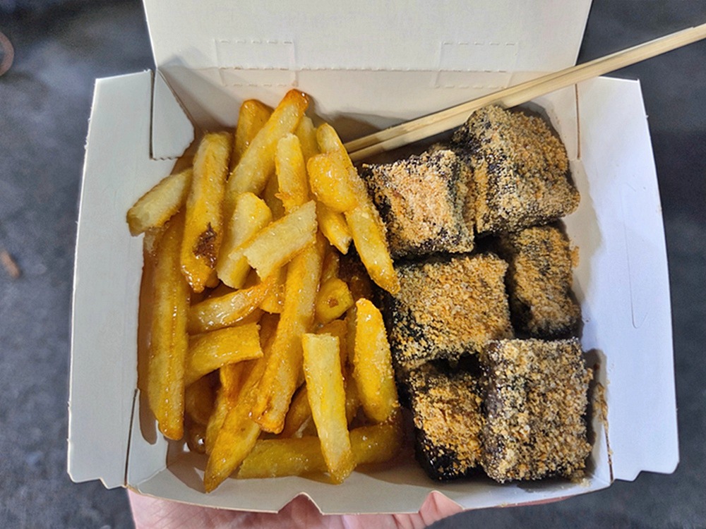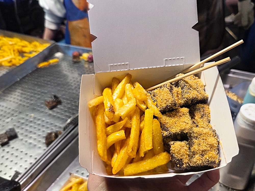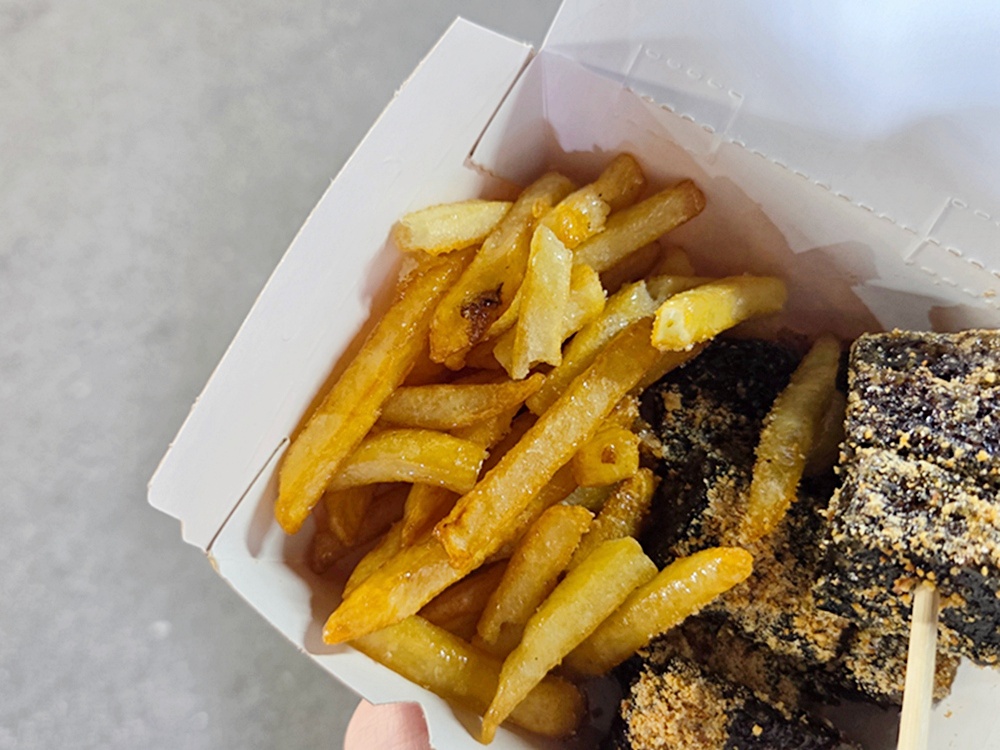 整體來說,硬翰拔絲米血還算蠻有記憶點的!不論是拔絲薯條還是拔絲地瓜球,都在原本熟悉的小吃上多了一點變化