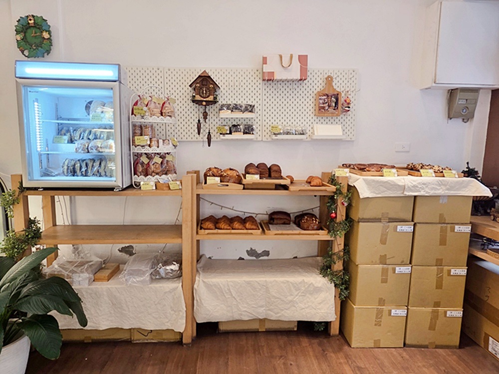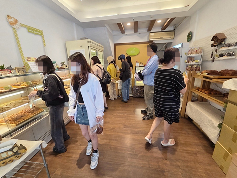 最近在脆上爆紅後,下午兩點多店內已經擠滿人潮,小小的空間顯得有些擁擠!大家在麵包架前來回挑選,耳邊不時傳來「這也太便宜了」的耳語