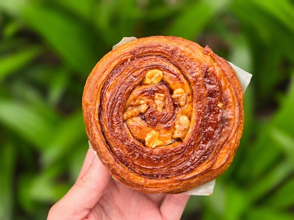 入口肉桂香氣很明顯,麵包裡一圈一圈夾著肉桂內餡,還吃得到核桃顆粒!如果你本來就喜歡肉桂捲,應該會很愛,但沒那麼愛肉桂味的話,可能就要考慮一下