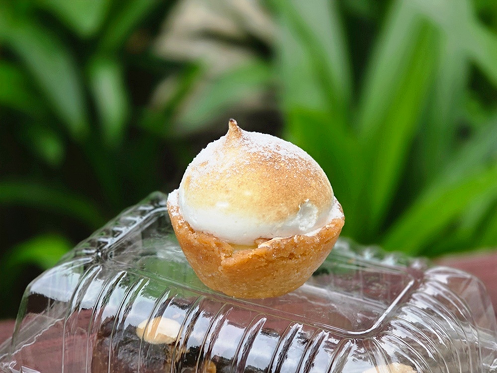 檸檬塔雖然小小一顆,但上面蛋白霜澎澎的很可愛,像雲朵一樣,下面檸檬餡酸度明顯,是那種小巧卻充滿層次感的精緻小品