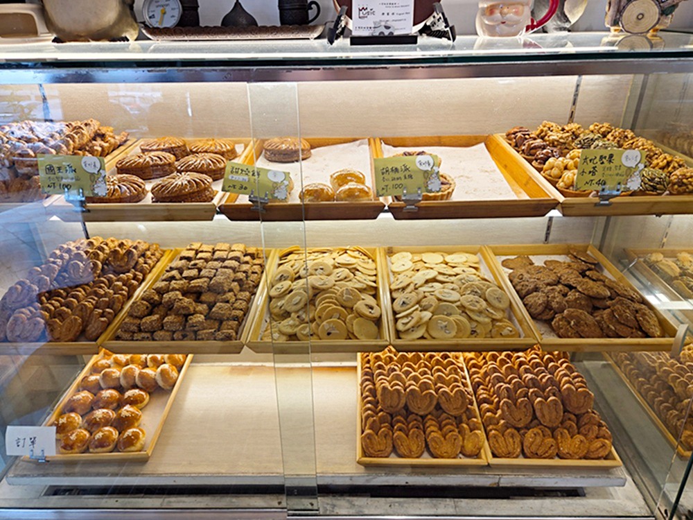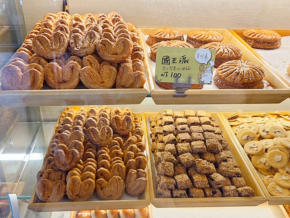 蝴蝶酥是最多人推薦的品項,玻璃櫃裡準備了好幾盤