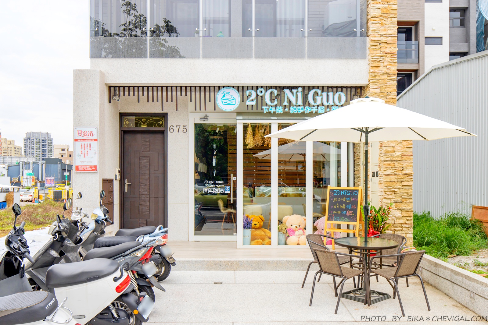 今年二月份新開幕的2度C Ni Guo就位在公益路上,附近路旁都有停車格,騎車或搭車過來也很方便!其實之前就很肖想倪菓幽靈的千層蛋糕了,無奈一直沒有動力衝去后里,這次可以說是如願以償啦!