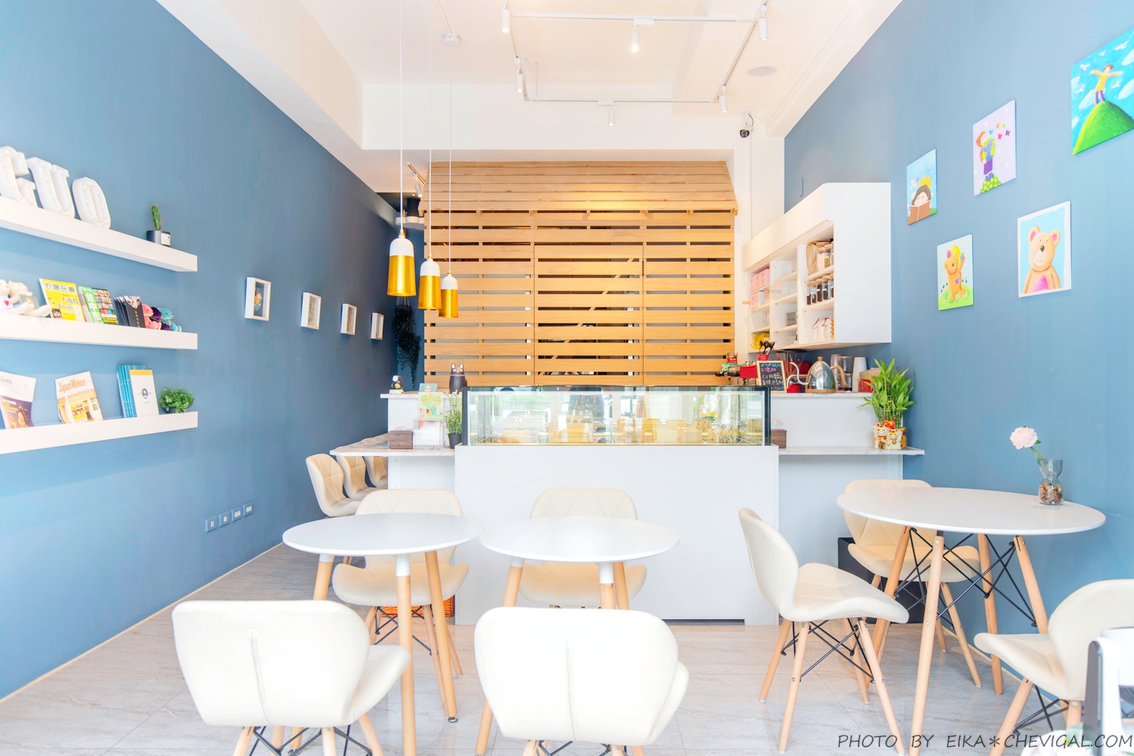 店內的色彩以藍綠色與白色為主,讓人覺得放鬆不壓迫;而且架上不僅有多本書籍與雜誌可以翻閱,還有不少花草與可愛的娃娃,特別溫馨可愛!