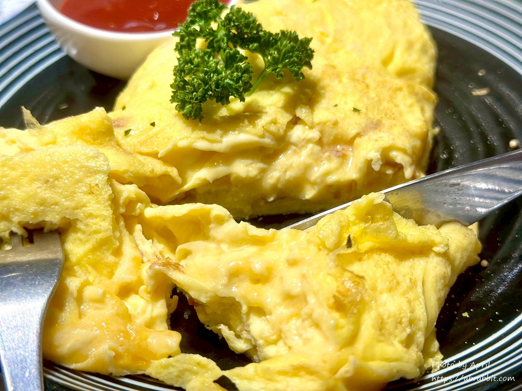 雞腿排煎得外皮恰恰裡頭的肉有肉汁,那個歐姆蛋也是很讚,裡頭軟嫩不乾巴巴,剛好我們也有多點一份單點的歐姆蛋,直接拍斷面秀給你看啦。
