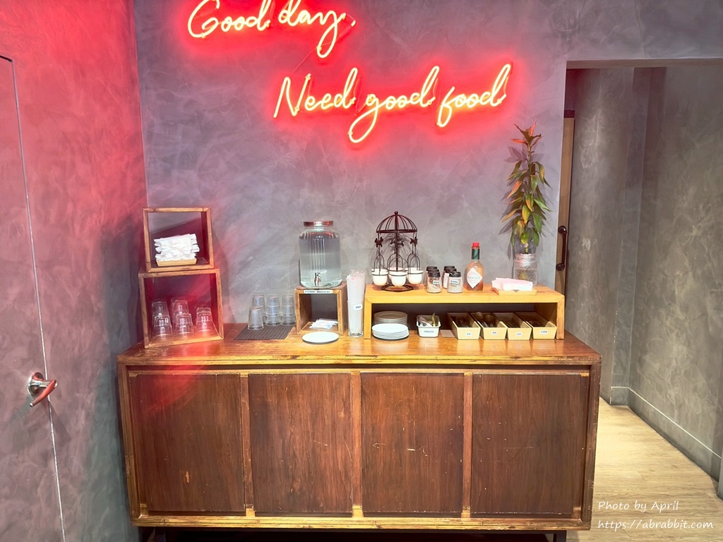 柒柒早午餐位於綏遠路和永定二街交叉口附近,蠻好找的。店內帶點文青工業風格為主調,搭配灰色水泥牆,與鵝黃色的燈泡。座位不多不少,也有大片玻璃窗的高腳椅座位區,看著窗外吃早午餐也很不賴。