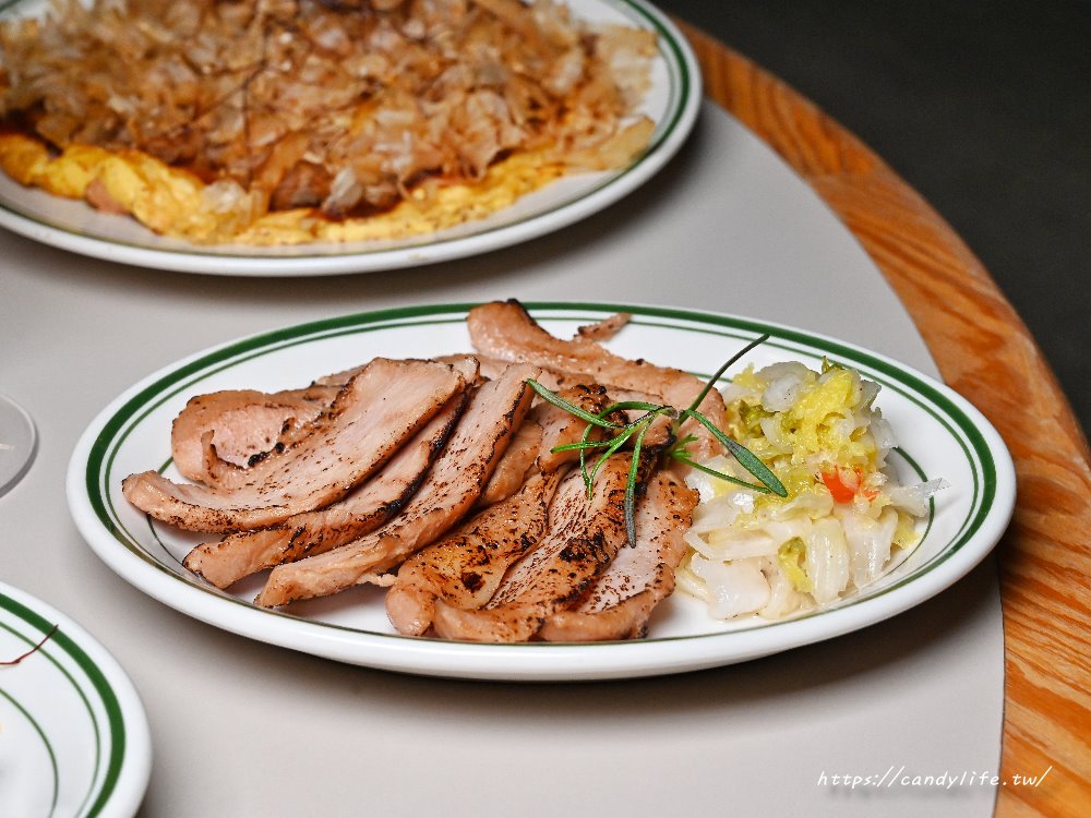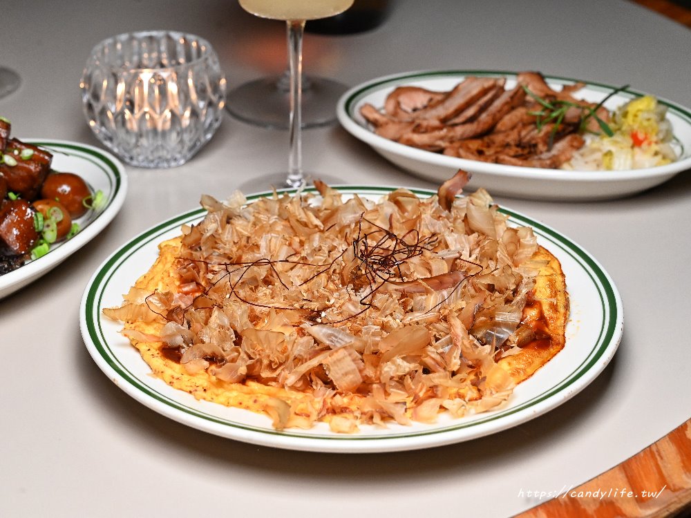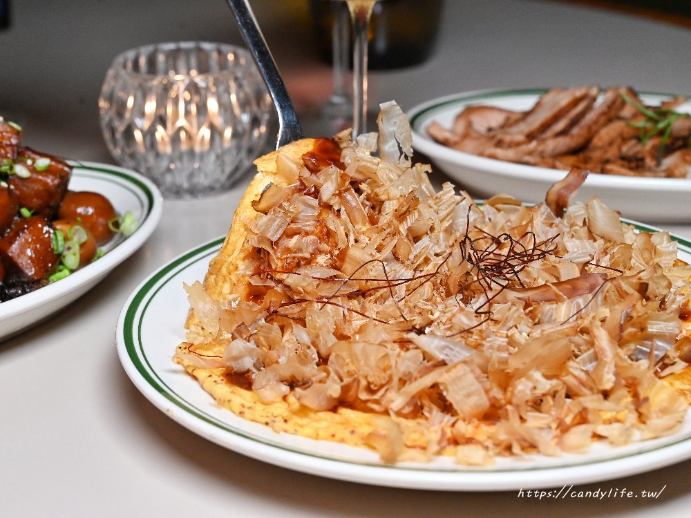 這道有點像日式大阪燒,滑嫩的雞蛋中混入鮮嫩雞肉香煎至金黃微酥,刷上特製醬汁後再撒上滿滿柴魚片,香氣隨著熱氣飄散,入口時能同時感受到雞蛋的柔軟、雞肉的彈嫩與柴魚的鹹香,濃郁又涮嘴