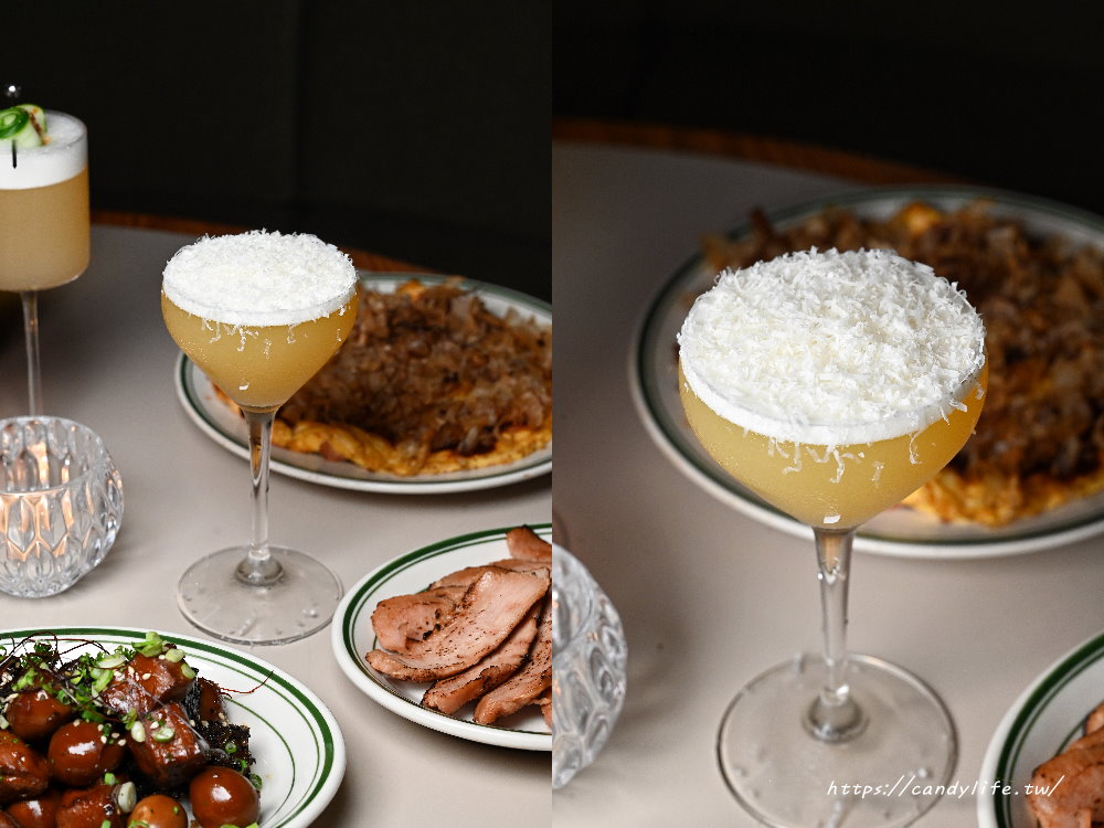 這款調酒帶有水果酒的明亮風格,以鳳梨的熱帶果香為基底,搭配麗葉酒的果甜與四季春的茶韻,入口彷彿品嚐鳳梨酥般的香氣,甜而不膩;尾韻再撒上現刨起司,帶來微鹹與奶香的點綴,讓整體味覺更加圓潤,甜香與茶韻、果香互相呼應