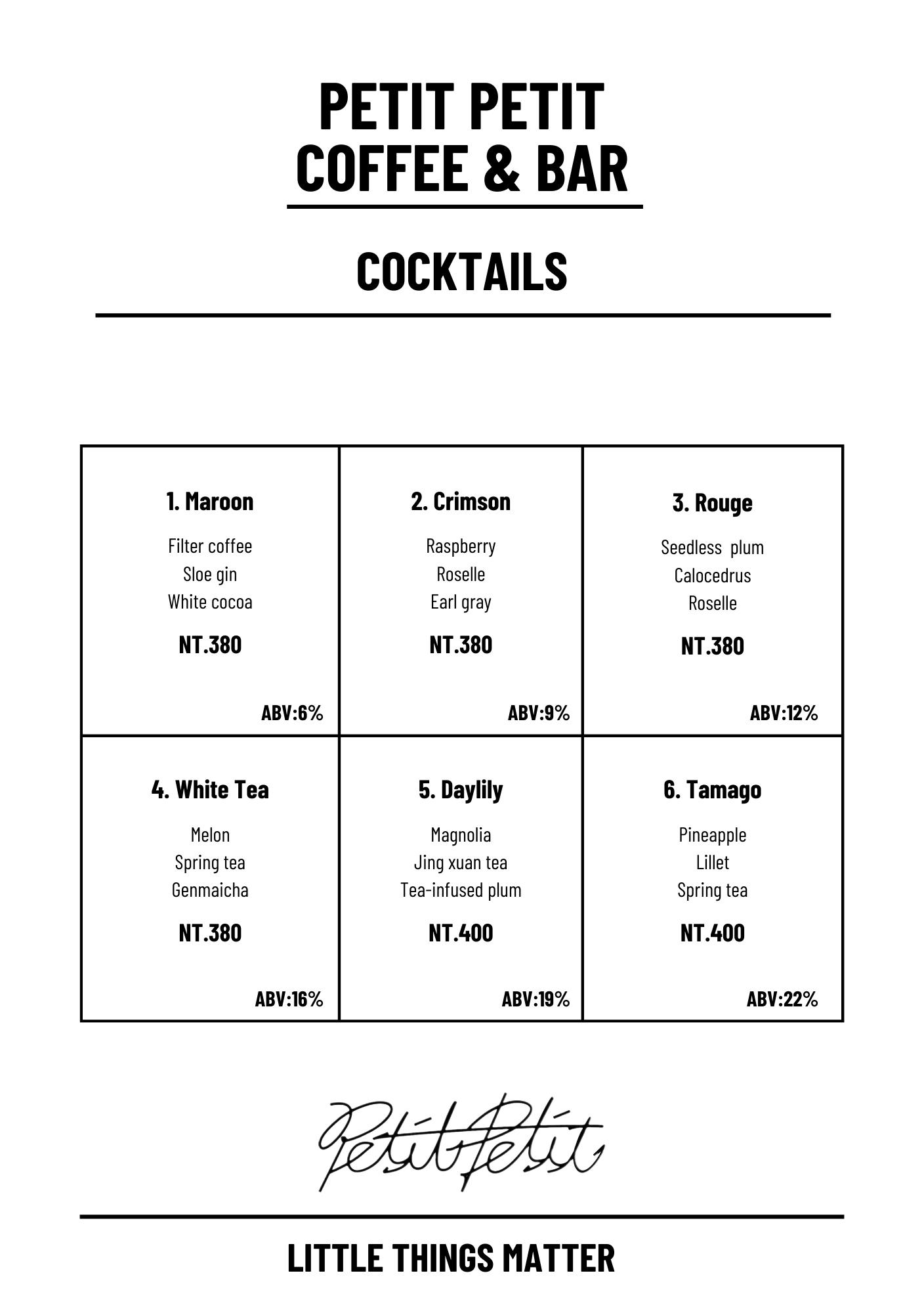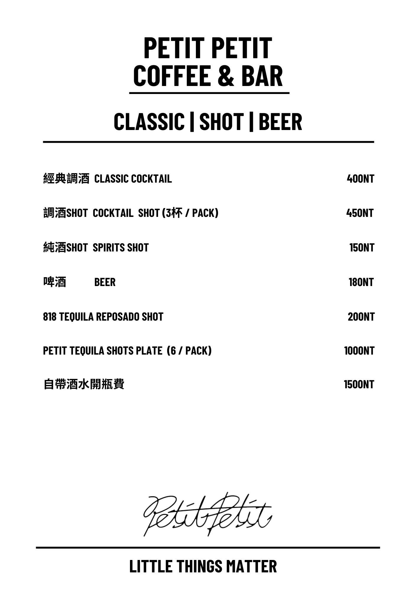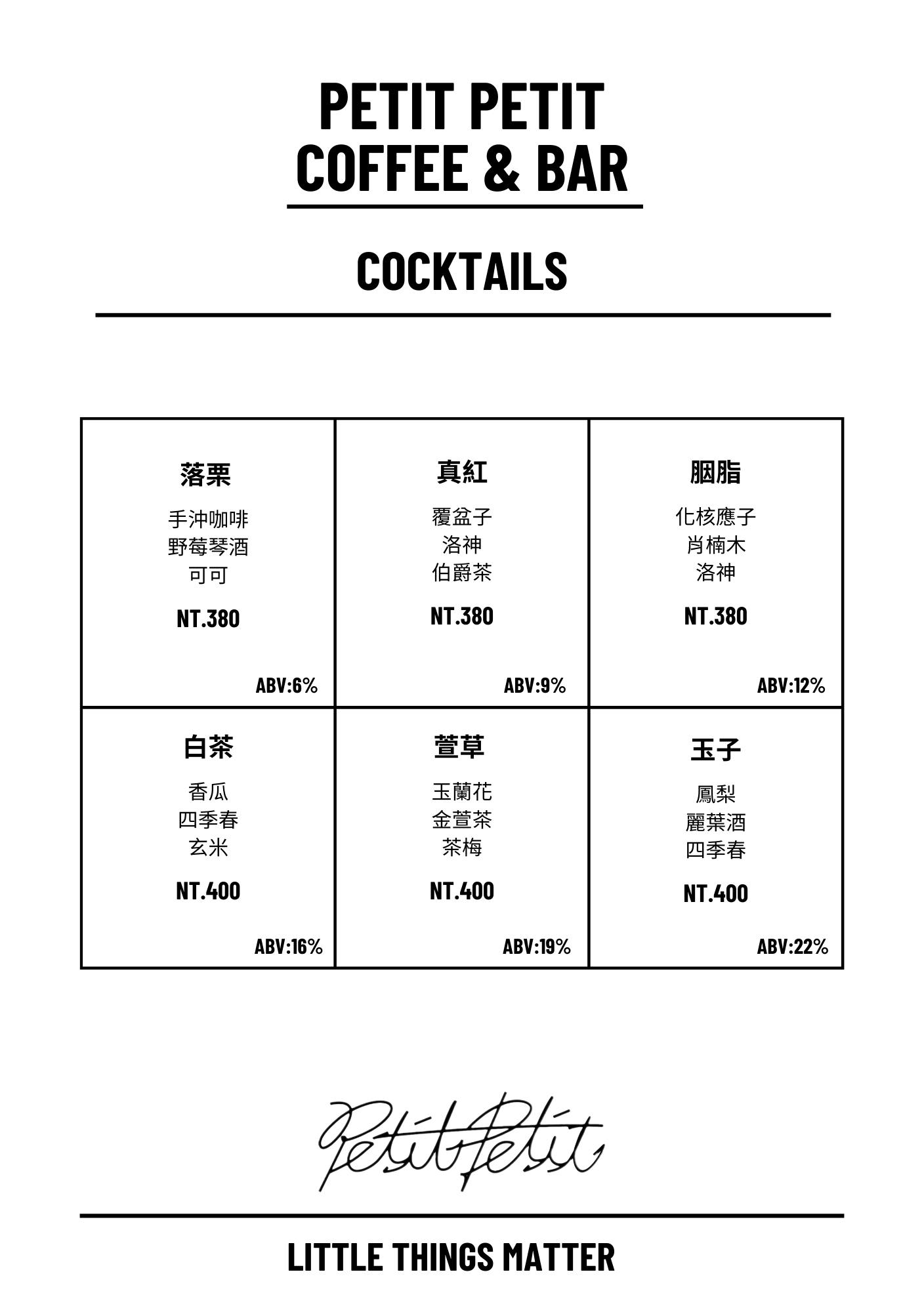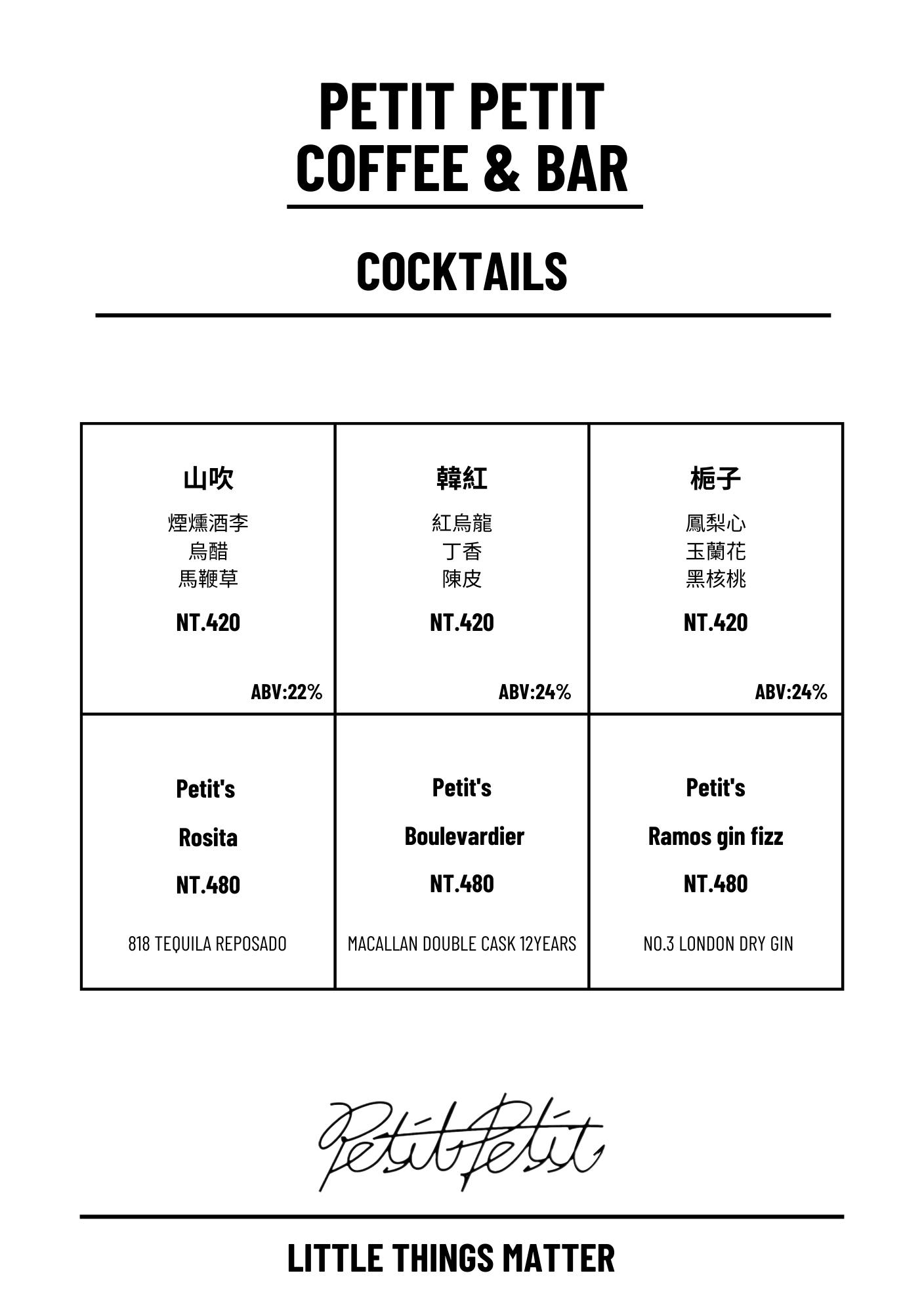 Petit Petit Bar & Coffee菜單